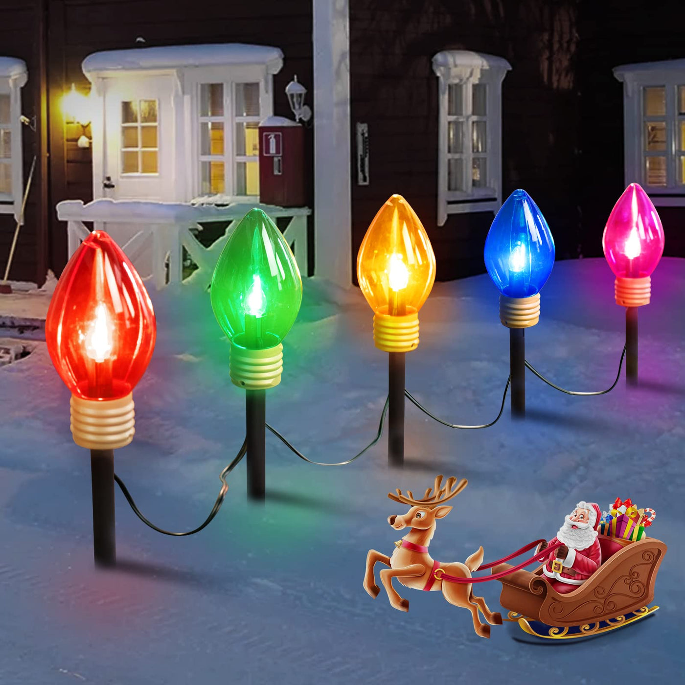 Minetom Christmas Lights Jumbo C9 Outdoor Lawn Decorations with Pathway Marker Stakes, 8.5 ft C7 Lights Covered Jumbo Glitter Mu
