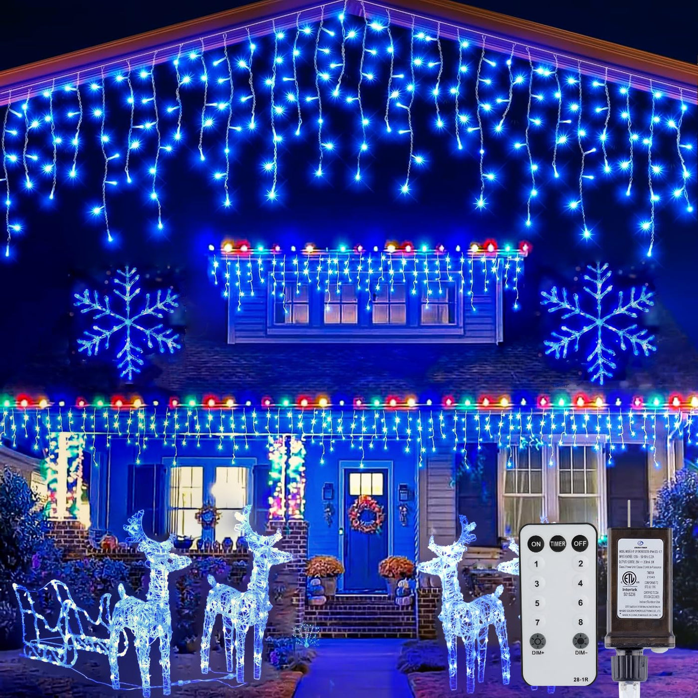 Minetom Icicle Lights For Outside, 164Ft 1344 Led Blue Christmas Lights With 252 Drops, Icicle Christmas Lights Outdoor With Rem