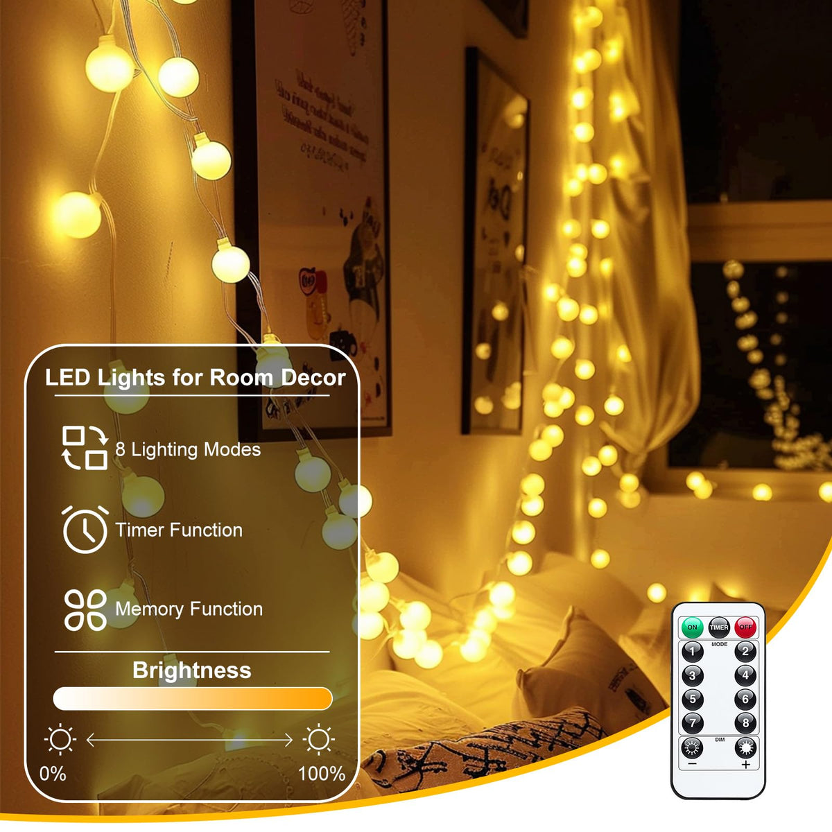 Minetom Led Globe String Lights, 2 Pack Total 46Ft 100 Led Usb Operated Fairy Christmas Lights With Remote, Xmas Twinkle Lights For Party Wedding Wall Dorm Patio Canopy Room Decor