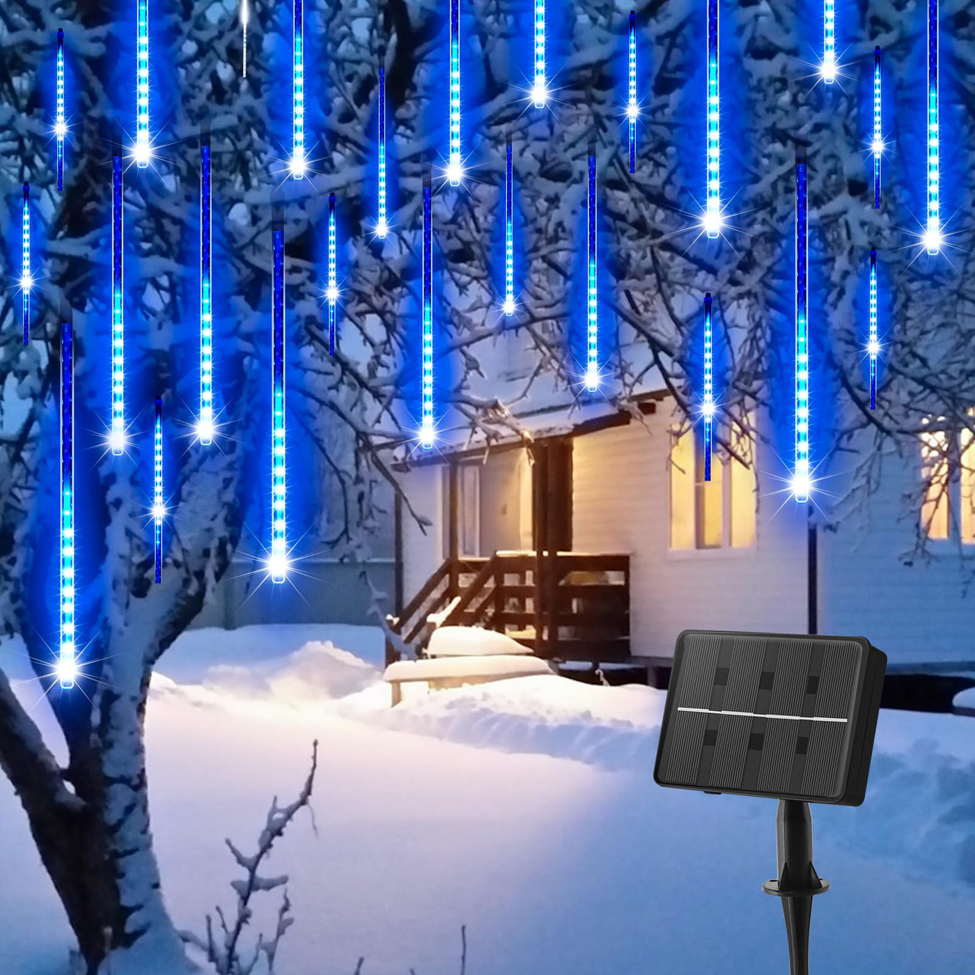 Q: What color are the Minetom Solar Meteor Shower Lights?A: The lights are available in a striking blue color, adding a unique touch to your outdoor decorations.