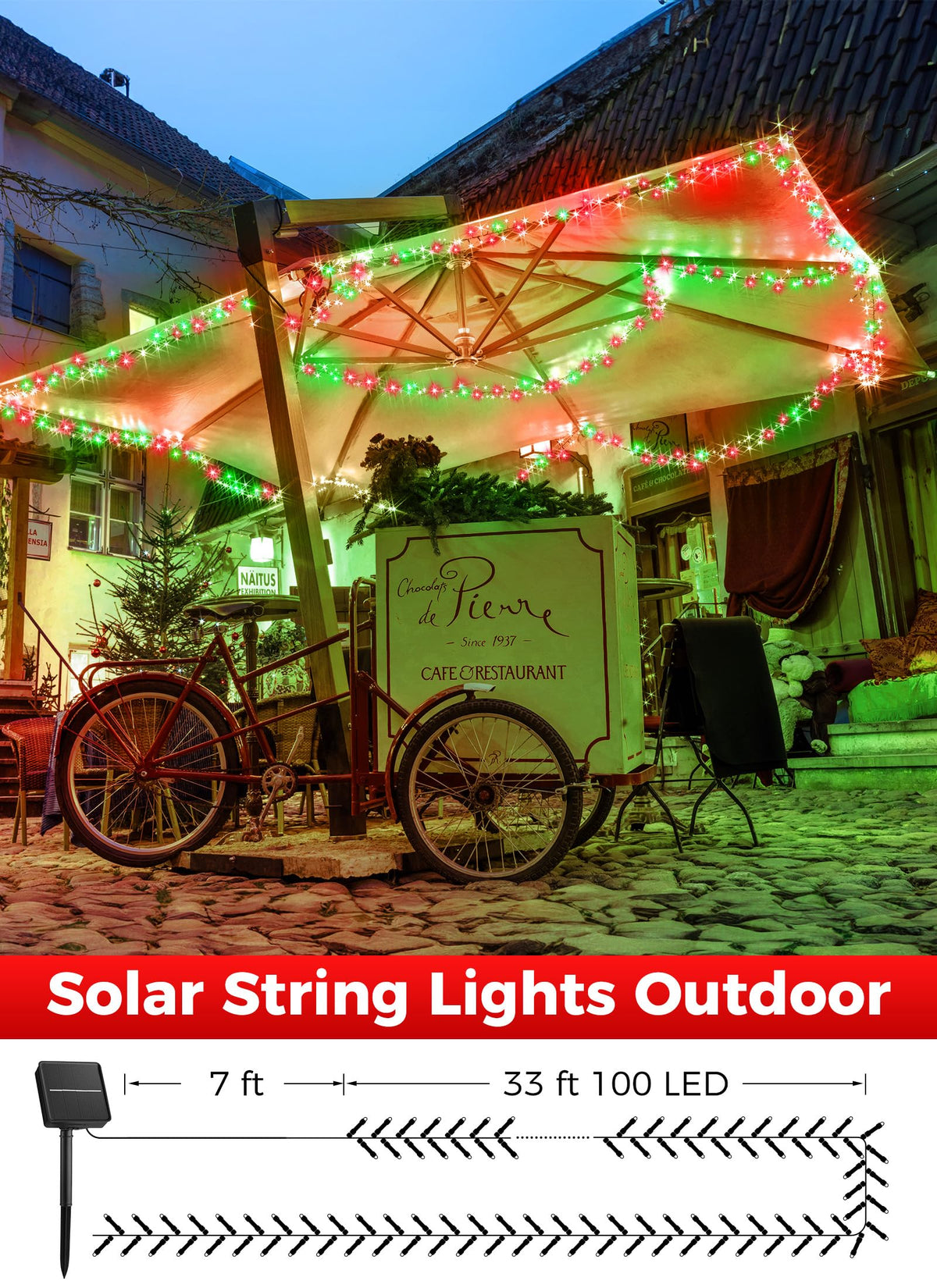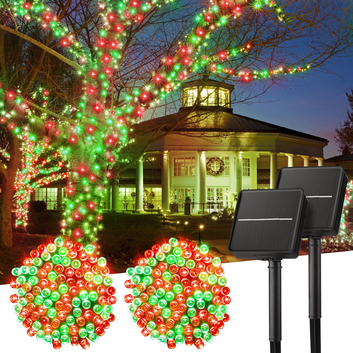 Minetom Solar Christmas Lights Outdoor Waterproof, 2 Pack Total 80Ft 200 Led Solar Lights With 8 Modes, Solar Christmas Outdoor Decoration, Solar String Lights For Outside House Tree, Red & Green