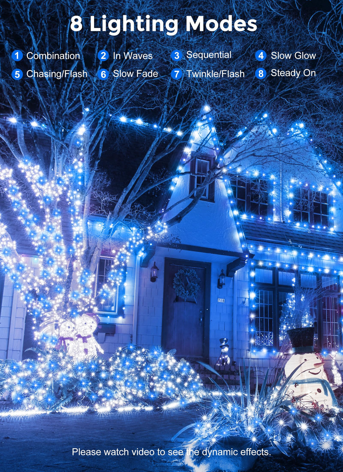 Specifications: Bulb Count: 100 LED Light Color: Blue and White Lighted Length: 33 Feet Lead Wire Length: 6.56 Feet