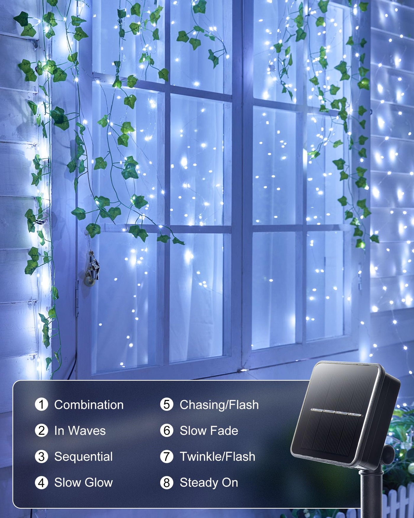 Minetom Solar String Lights For Outside, 33Ft 100 Led Outdoor Solar Fairy Lights, 8 Modes Balcony Lights For Tree Patio Christmas Party Wedding Decor (Pure White)