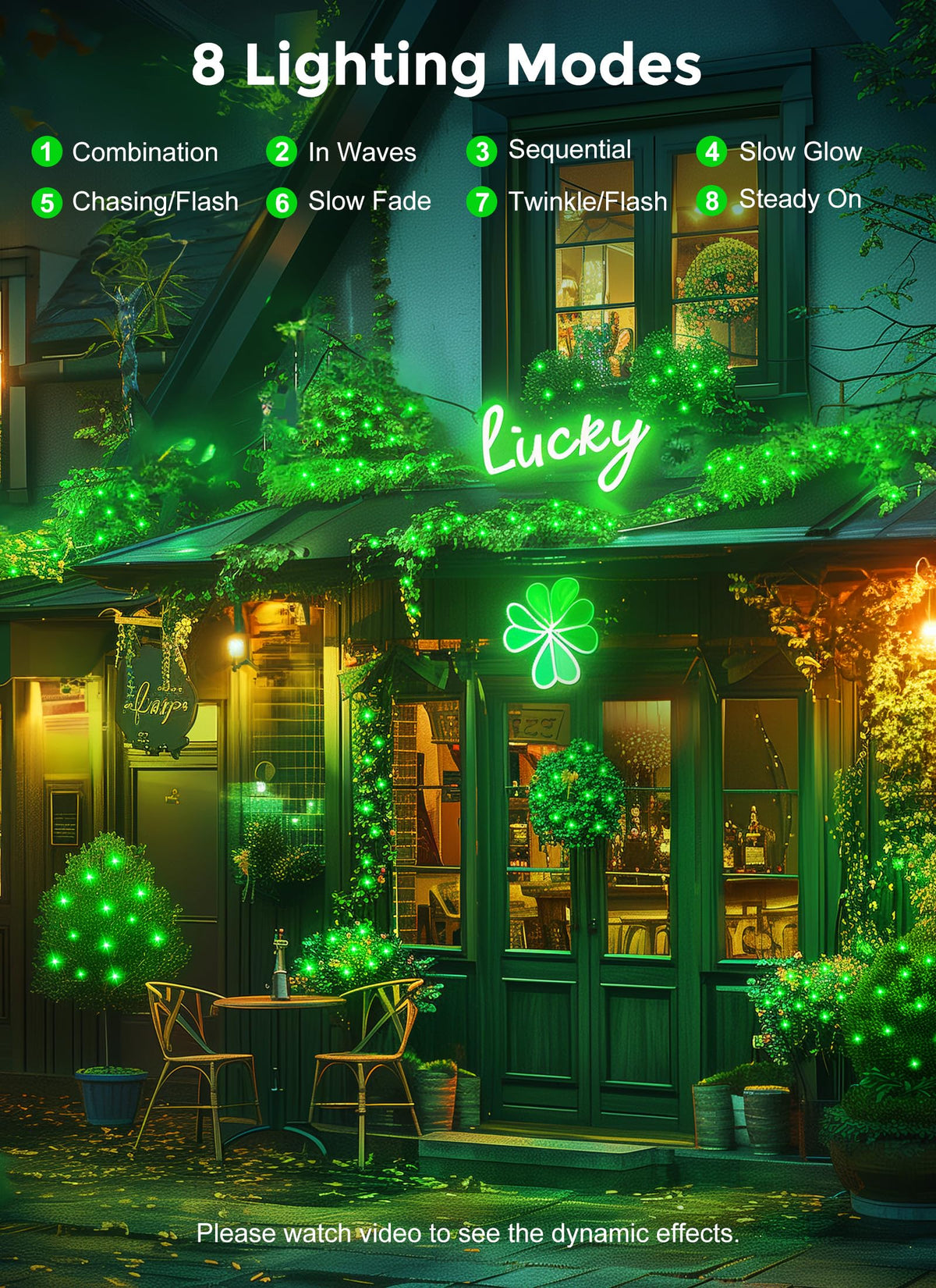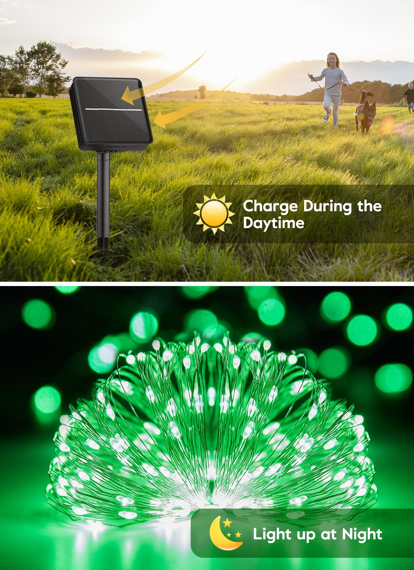 Minetom Solar String Lights For Outside, 33Ft 100 Led Outdoor Solar Fairy Lights, 8 Modes Balcony Lights For Tree Patio St Patricks Day Decorations(Green)