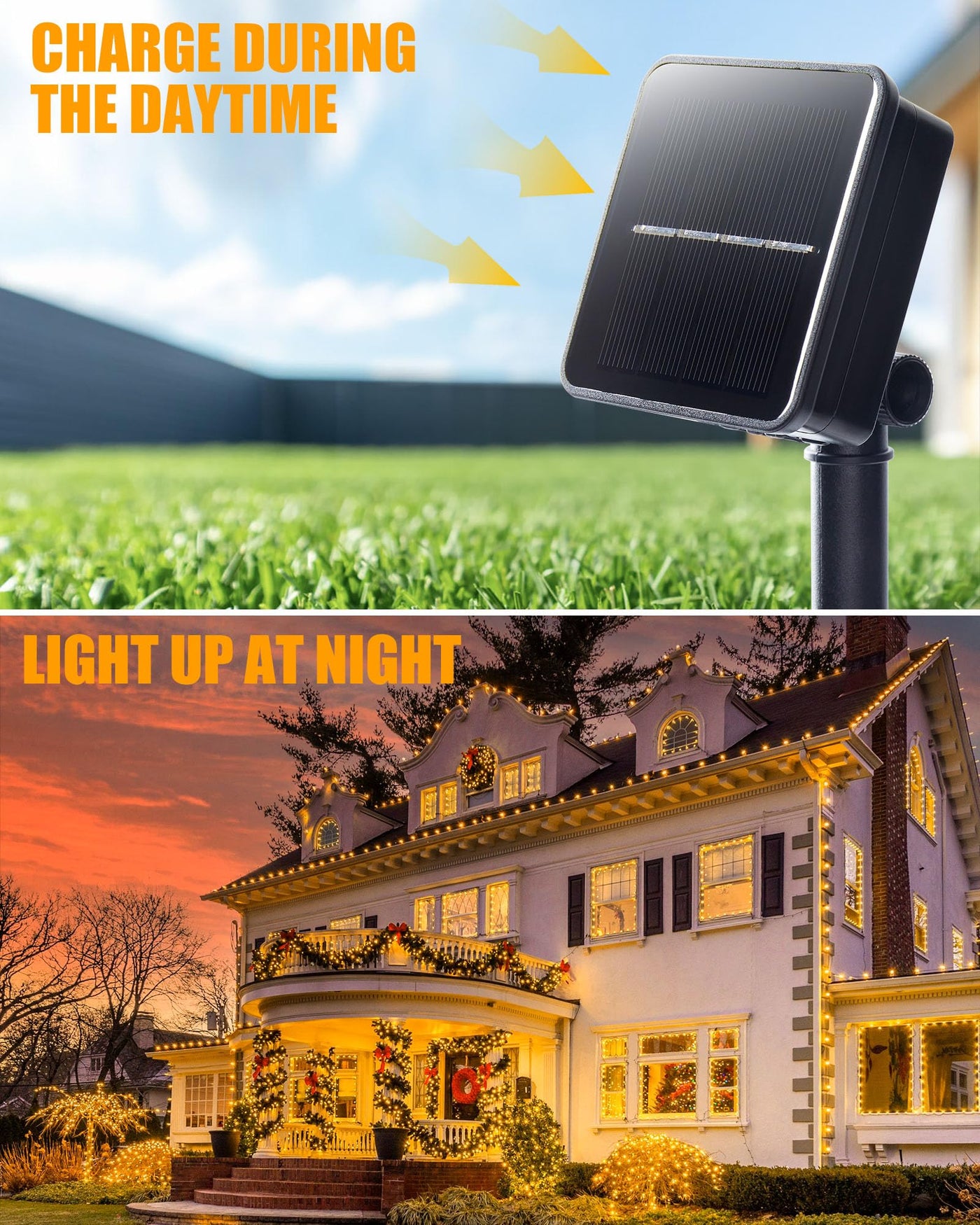 The solar fairy lights for outside has a magical nighttime glow. The outdoor solar string lights will illuminate your space with an alluring atmosphere. The solar led lights for outside made with bright LED bulbs and durable copper wire. The solar tree lights are IP65 waterproof.