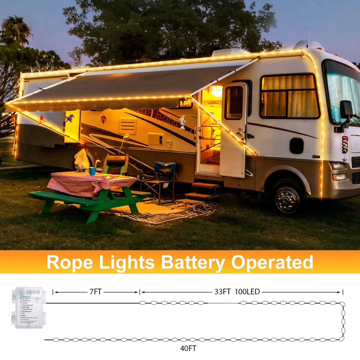 Minetom String Lights Battery Operated, 40Ft 100 Led Outdoor Rope Lights Battery Operated, Christmas String Lights With Timer, 8 Mode, Christmas Rope Lights For Outside Bedroom Indoor, Warm White