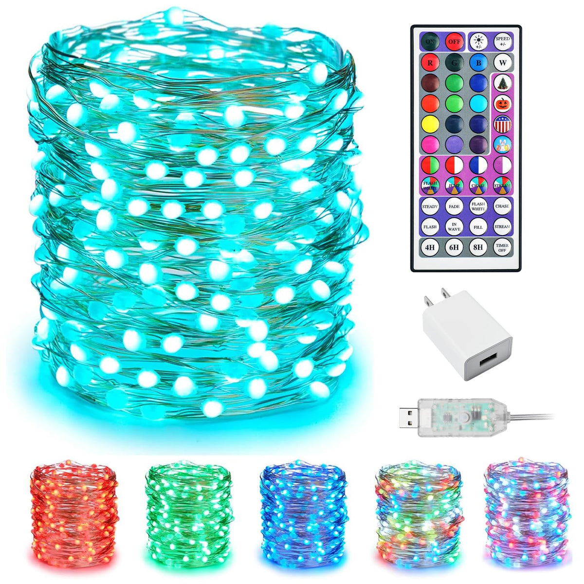 Minetom Upgraded 66ft Plug-in Color Changing Fairy String Lights with Upgraded Remote - Decorate a Cheerful Christmas ? The upgraded plug-in color changing fairy string lights are 66 feet long with 200 bright LED bulbs. The thin copper wiring and smaller sized LED bulbs will add a delicate and cozy touch to your indoor/outdoor space. ? Compared with similar products on the market, our lights come with a dedicated power adapter that perfectly matches the light string. With the power adapter, you can see the purest and vibrant color of the string lights. And you can also use a USB plug to power the lights. Perfect for decorating tables, desks, headboard, pictures on the wall, Christmas trees, curtains near the window or any DIY shape you like to wrap. ? Take this lovely string light to explore a fascinated decorative lighting world. Ideal for bedroom, tent, ceiling, cubicle, room, wall, ceiling, shelf patio, wedding, party, Christmas, New Year and other festival decoration. Perfect gift for your children, friends and families. Tips The remote control comes with a battery already in place, a plastic tab separating the connection must be removed before it will work. Features ? 24 Bright Colors Available ? 12 Light Flashing Modes ? Upgraded Remote Control ? 200 Brighter Safe-to-touch LED ? IP65 Waterproof for Indoor and Outdoor Use ? Easy-to-shape Thin Wire Specifications ? LED Color: 24 Colors for Changing ? LED Quantity: 200 LEDs ? Waterproof: IP65 ? String Length: 66 feet ? Leading Wire: 6.6 feet ? LED Spacing: 4 inches Package Included 1 Minetom Upgraded USB-plug 66ft 200 LED Color Changing Fairy String Lights 1 Remote Control 1 UL-listed Power Adapter 1 User Manual