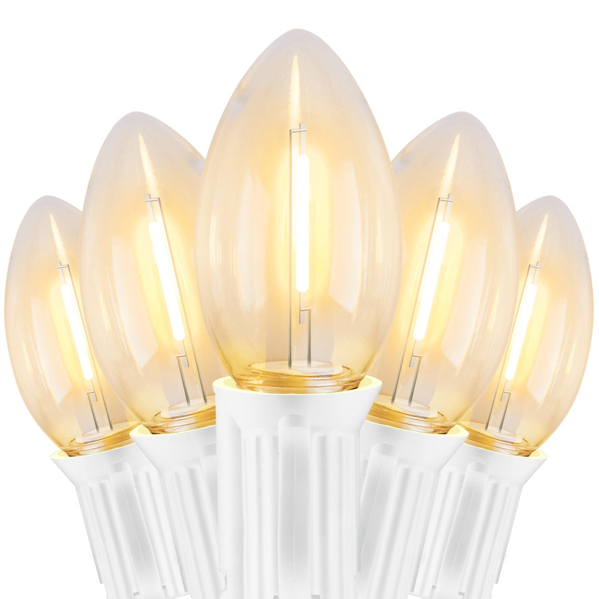 Q: What type of wire is used in these Christmas lights?A: The lights feature a white wire that enhances their vintage appearance and complements the warm white glow of the bulbs.