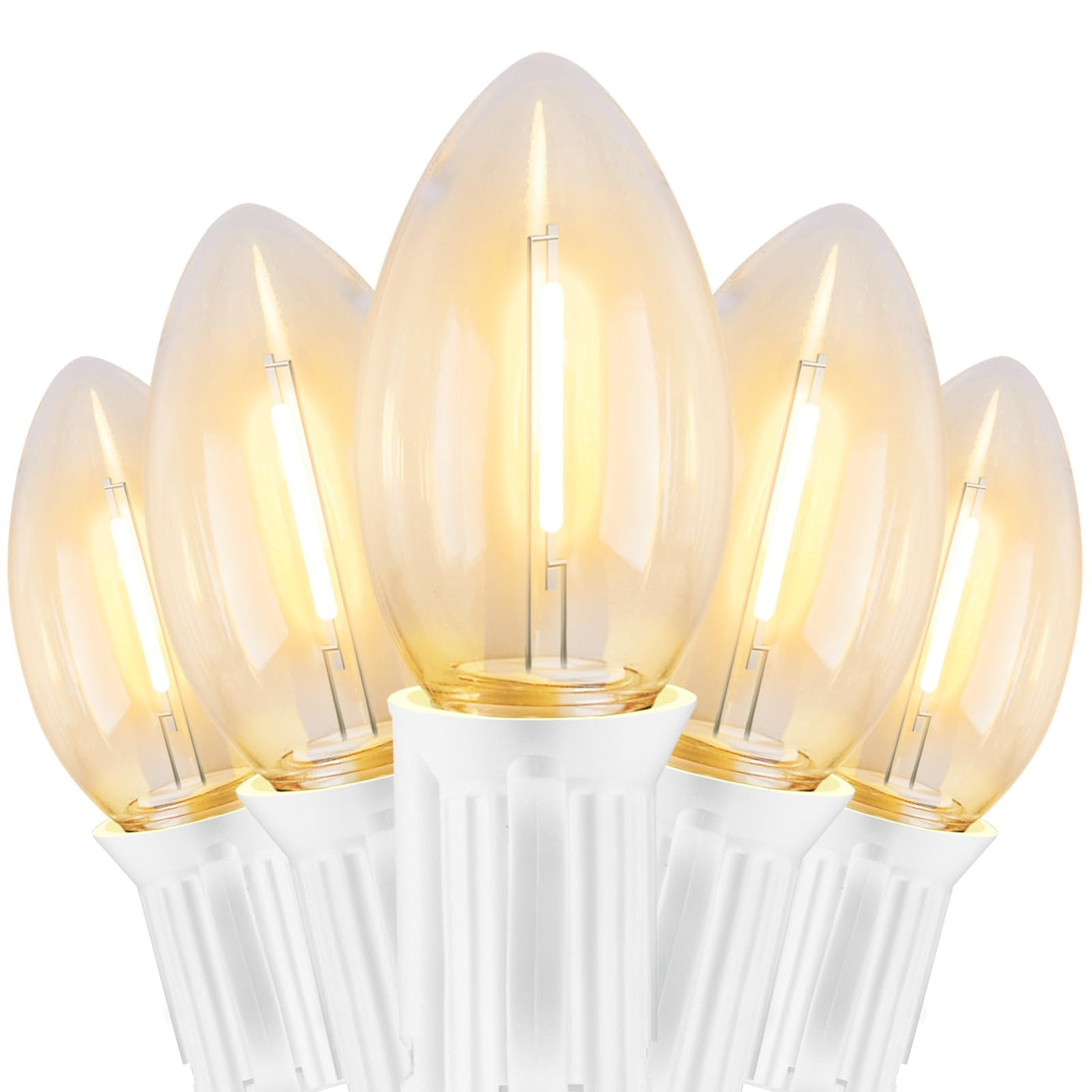 Q: What is the energy consumption of these LED bulbs?A: Each C9 bulb consumes one watt of energy, making them significantly more energy-efficient than traditional glass incandescent bulbs.
