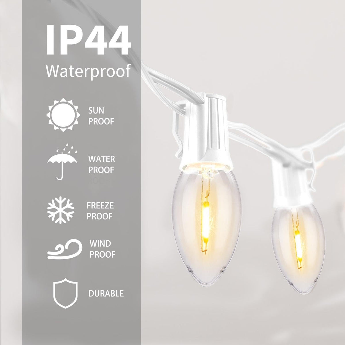 Q: Are these Christmas lights suitable for outdoor use?A: Yes, the C9 LED Christmas lights are waterproof and designed for both indoor and outdoor use, making them ideal for various occasions.