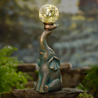 Lovely Garden Statues Decor: As The Symbol Of Good Luck And Happiness, Bronze Elephant Sculpture With Cracked Glass Ball Emits A Decorative Glow, Which Is Ideal For Creating A Warm Atmosphere In Patio, Yard, Porch, And Walkway. Auto On/Off Solar-Powered Lights: No Setup Required! Just Remain The Switch On, Place The Elephant In Sunlight For 6-8 Hours Of Charging, It Will Light Up Automatically In Night For 8-10 Hours. High-Quality Durable Resin Statue: The Hand-Painted Uv Resistant Coating & Solar Panel Are Waterproof And Can Be Used On Rainy Days Without Worrying About The Figurine Discolored. Perfect Size: Size Of The Little Elephant Sculpture Art Is 3.86''(W) X 4.72''(L) X 13.39''(H), Small And Delicate.