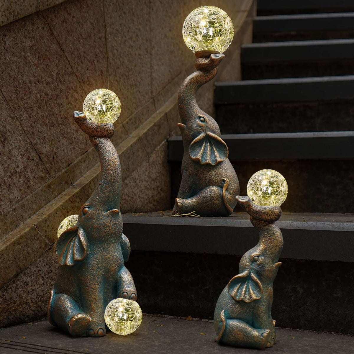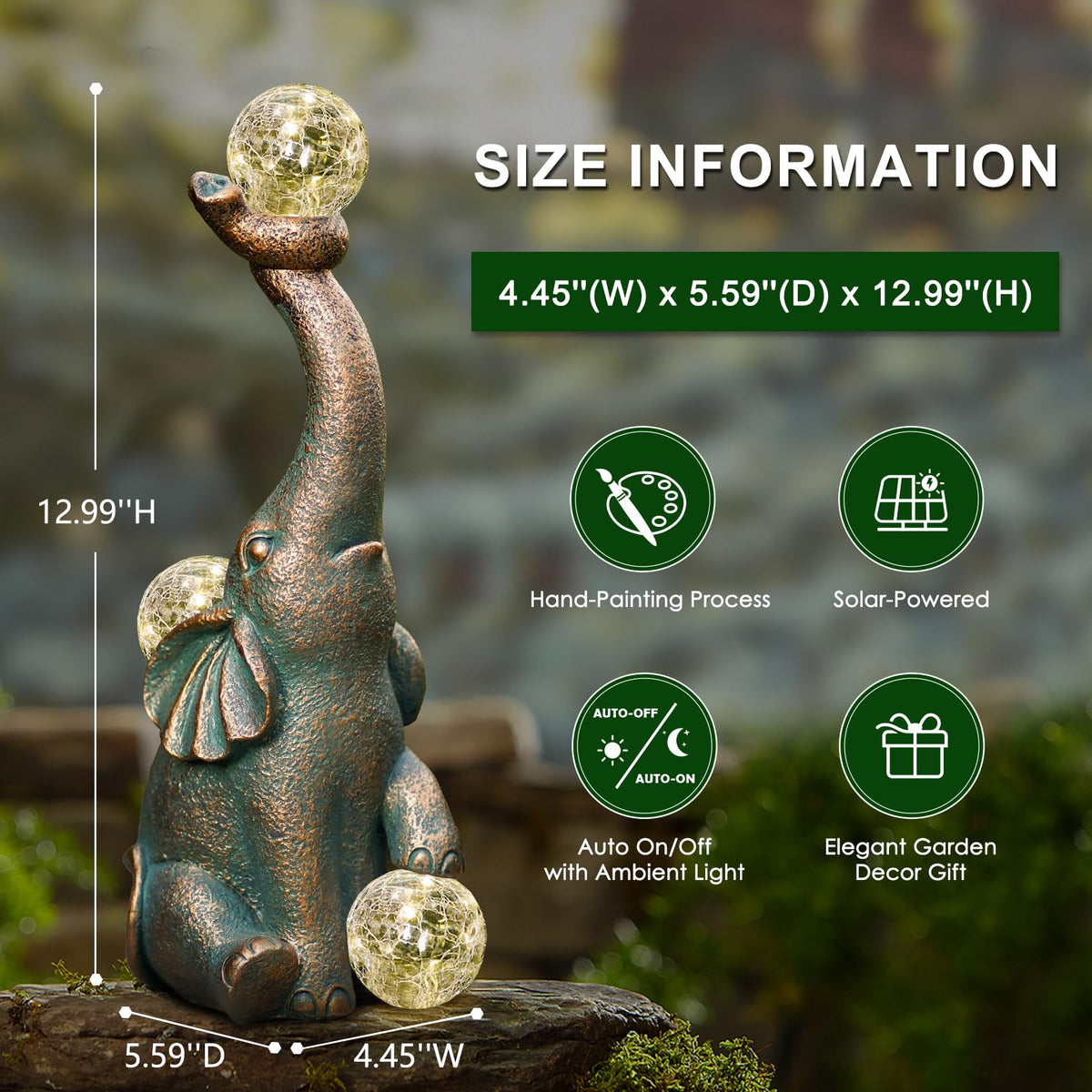 Mininova Garden Decor Outdoor Statues Elephant With Cracked Glass Balls, Cute Solar Figurine For Patio, Lawn, Yard Art Ornament