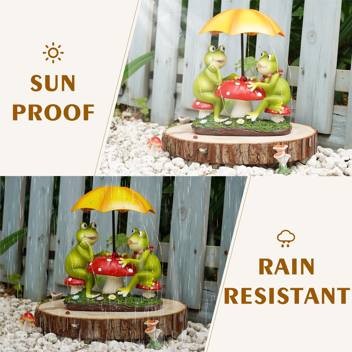 Mininova Solar Garden Outdoor Decor Statue Frog Figurines Sitting On Mushroom With Umbrella Led String Lights Resin Ornaments For Spring Birthday Housewarming