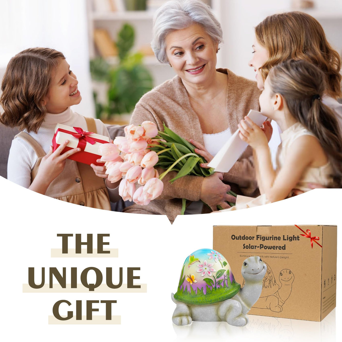 It Is A Turtle Solar Ornaments Outdoor Decorations Garden Statue With Three-Dimensional Relief And Flower, Birds Pattern. Perfect For In Home, Table, Windowsill, Patios, Lawns, Yards, Porches, Flower Gardens, Flower Beds, Sunrooms, Backyards, Walkways, Front Steps, Courtyards. Greats Gift Choice For Women Mother Children Father Daughter Kids Family Friend.