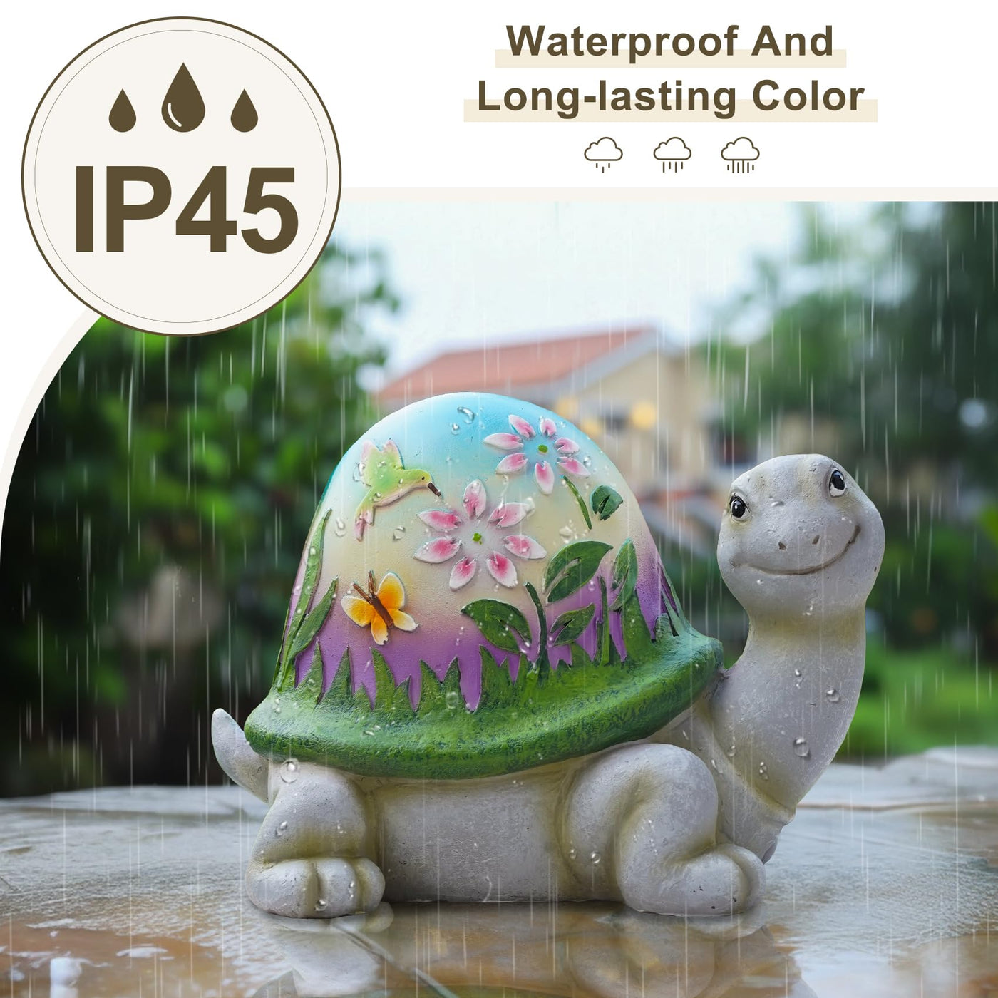 Mininova Solar Turtle Garden Statues With Hand-Painted Pattern Resin Sculptures Yard Decorations For Outside Outdoor Patio Porch