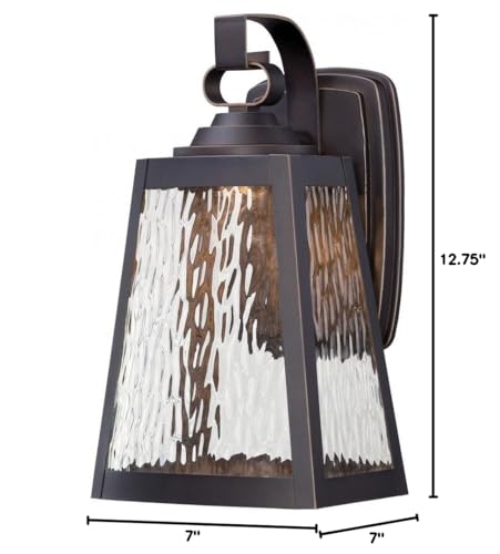 Q: What are the dimensions of the Minka Lavery Outdoor Wall Light?A: The Minka Lavery Outdoor Wall Light measures 12.75 inches in height and 7 inches in width, with a weight of 3.15 lbs.