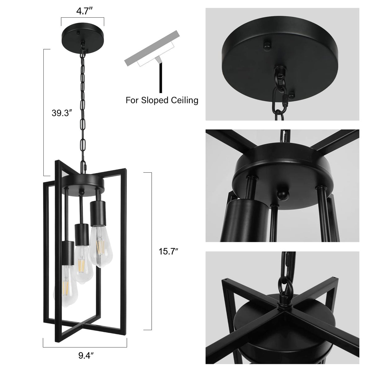 Q: What are the dimensions of the Modern Black Industrial Farmhouse Pendant Lighting?A: The pendant light measures 9.4 inches in width, 15.7 inches in height, and the canopy is 4.7 inches.