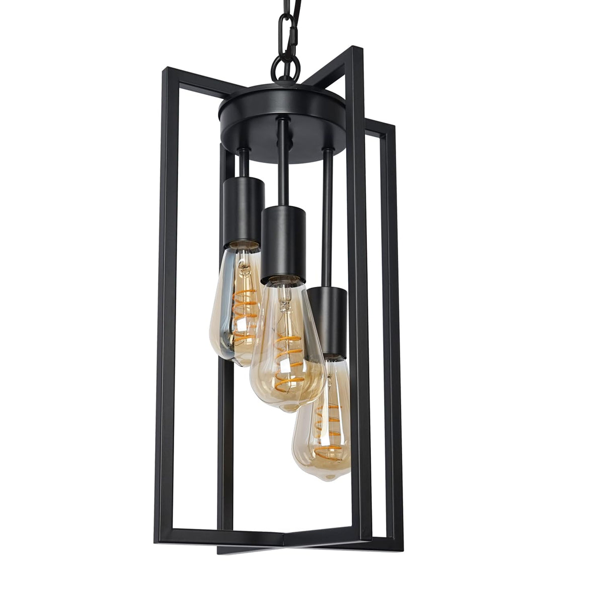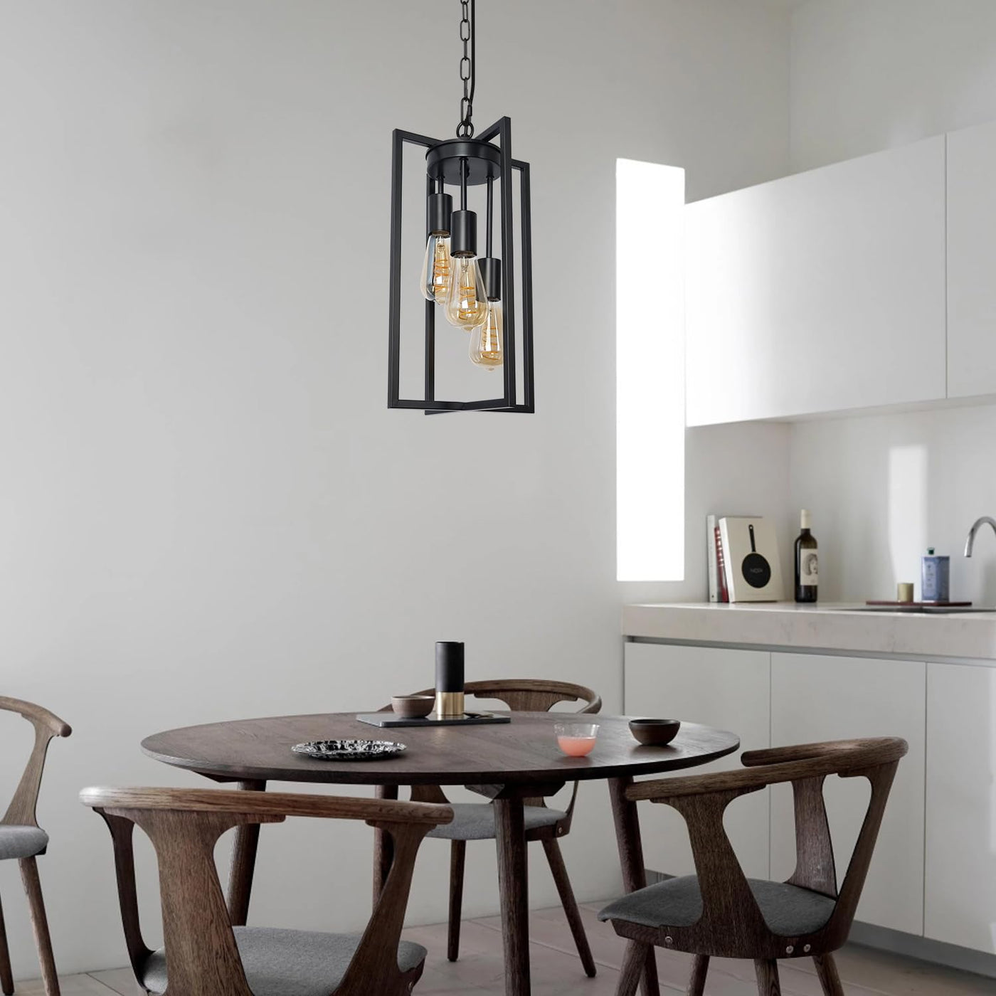 Mipaws Modern Black Industrial 3-Light Metal Cage Pendant Chandelier For Kitchen & Dining