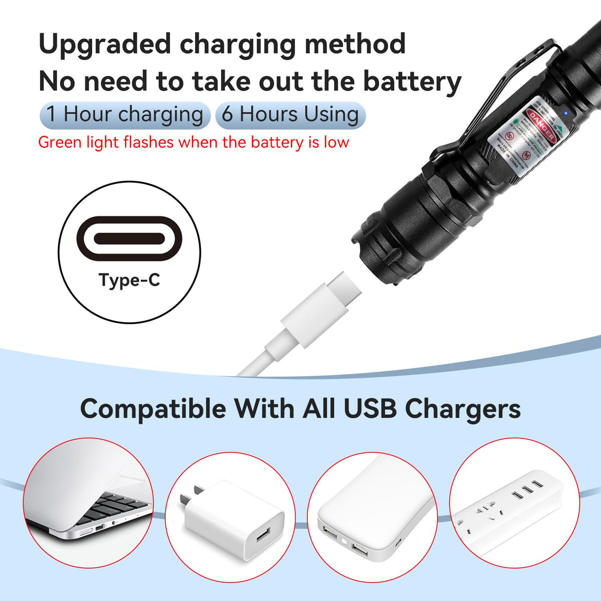 [Professional] Rechargeable Green Light Flashlight Long Distance Range for TV/LED/LCD Screens Tactical Flashlights Presentation Office/Outdoors/Astronomic/Construction [002]
