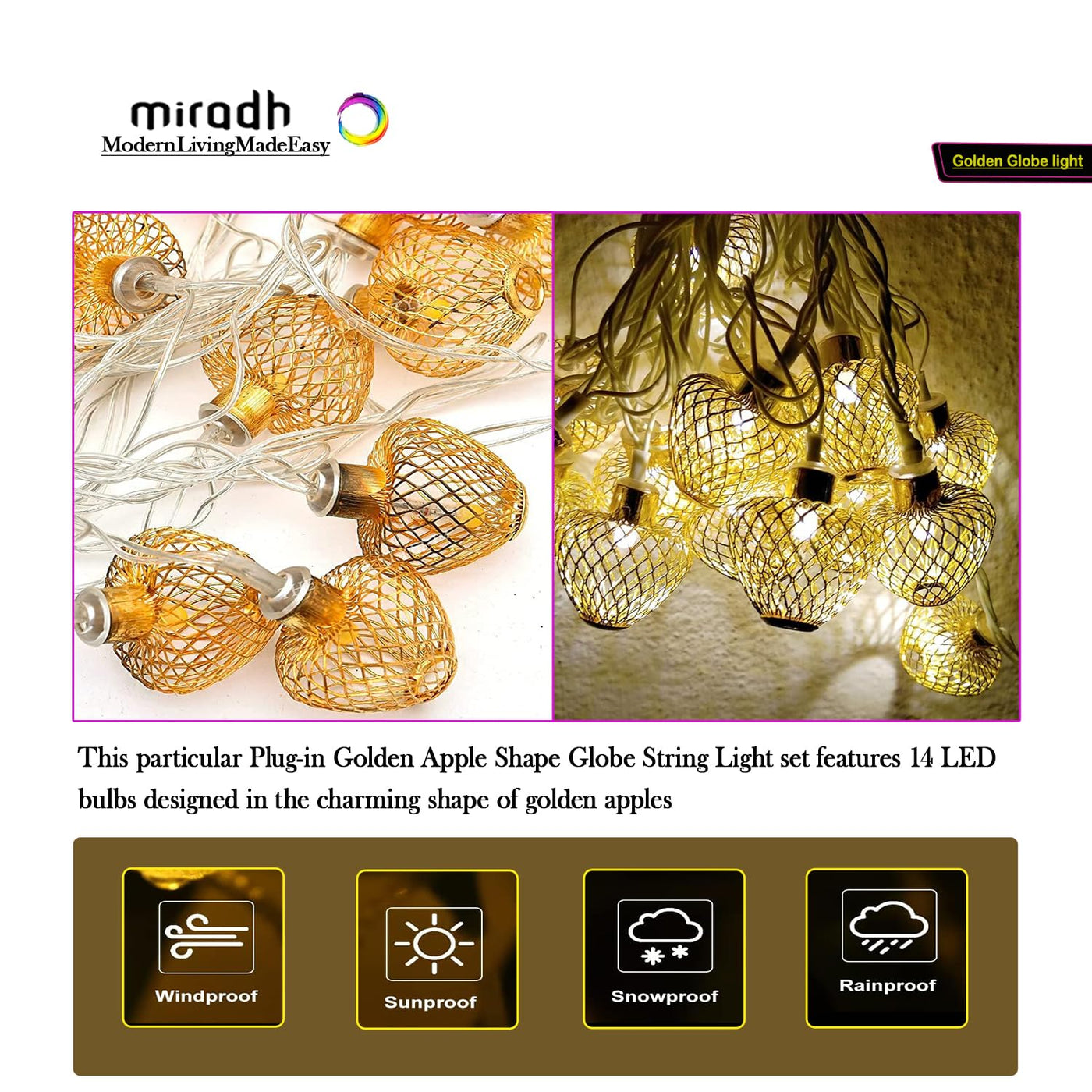 DescriptionThe unique design of Moroccan Orb string light is striking and adapts to any decor. For example, a mirror in the bedroom or decor in the living area with warm white light string. Enjoy the warm white glow and the pretty pattern that the fairy lights exudes in the on-state. Your decorative and gift ideas are no limits with this LED Moroccan Orb Light chain.