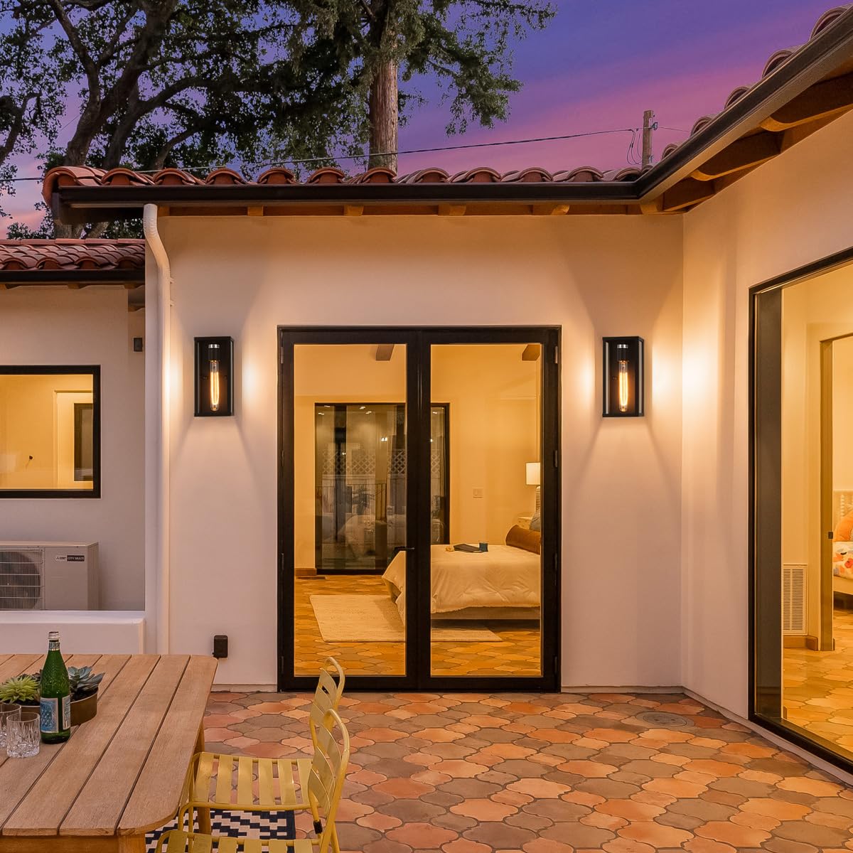 - **Versatile Lighting**: The sconces are suitable for dry, damp, and wet locations, making them an ideal choice for various outdoor settings. The replaceable bulb (not included) is recommended to be a filament bulb T9/T185 ST21/ST64 ST19/ST58 for optimal illumination.