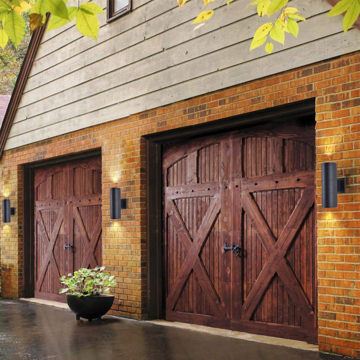Mirrea Modern Outdoor Porch Light Patio Light In 2 Lights With Matte Black Aluminum Cylinder And Tempered Glass Cover Waterproof