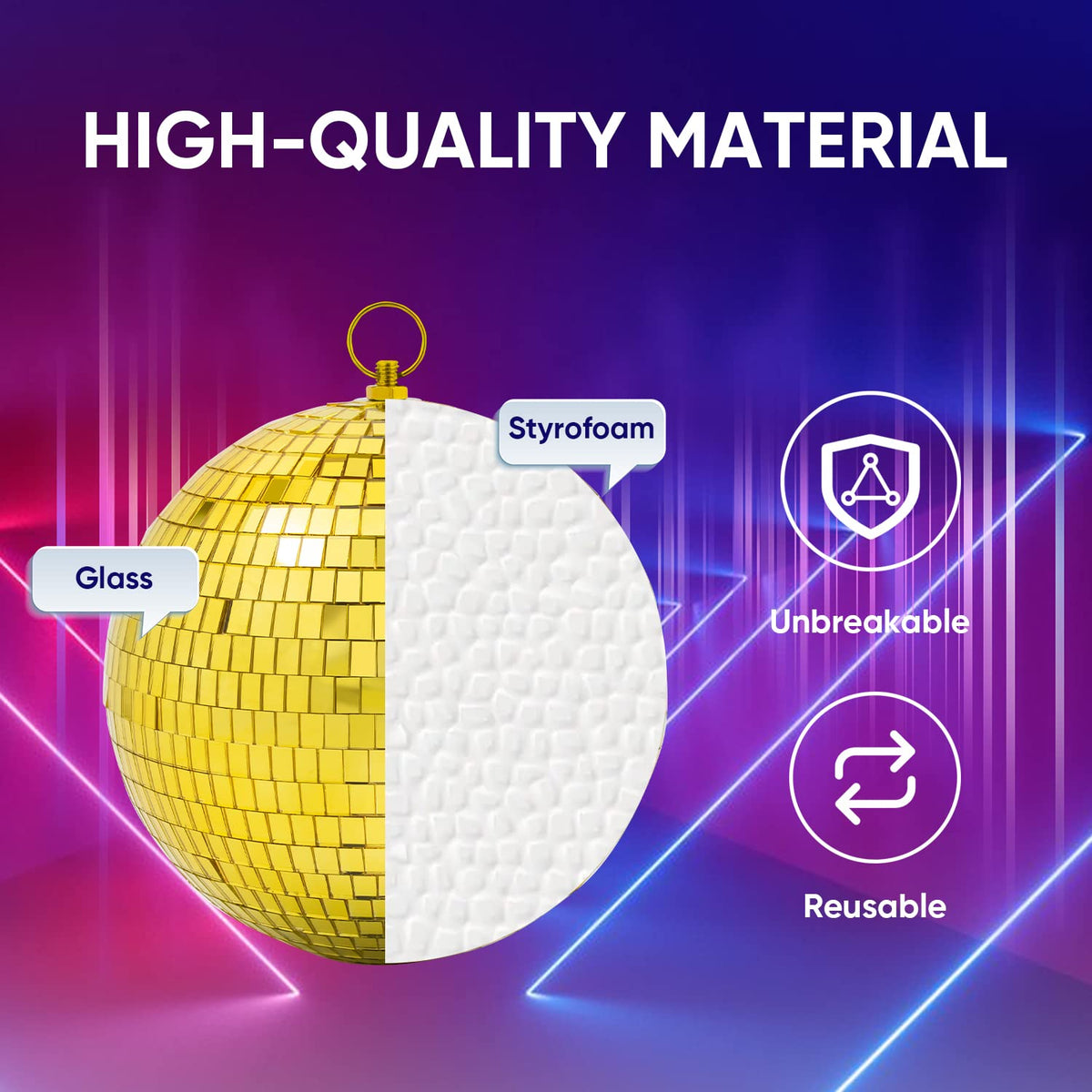 Mirror Disco Ball Decor with Hanging Ring: 8 Inch Large Gold Disco Ball Ornaments - Hanging Party Disco Balls for Party Decorations, 70s Theme Party, DJ, Wedding, Birthday, Christmas