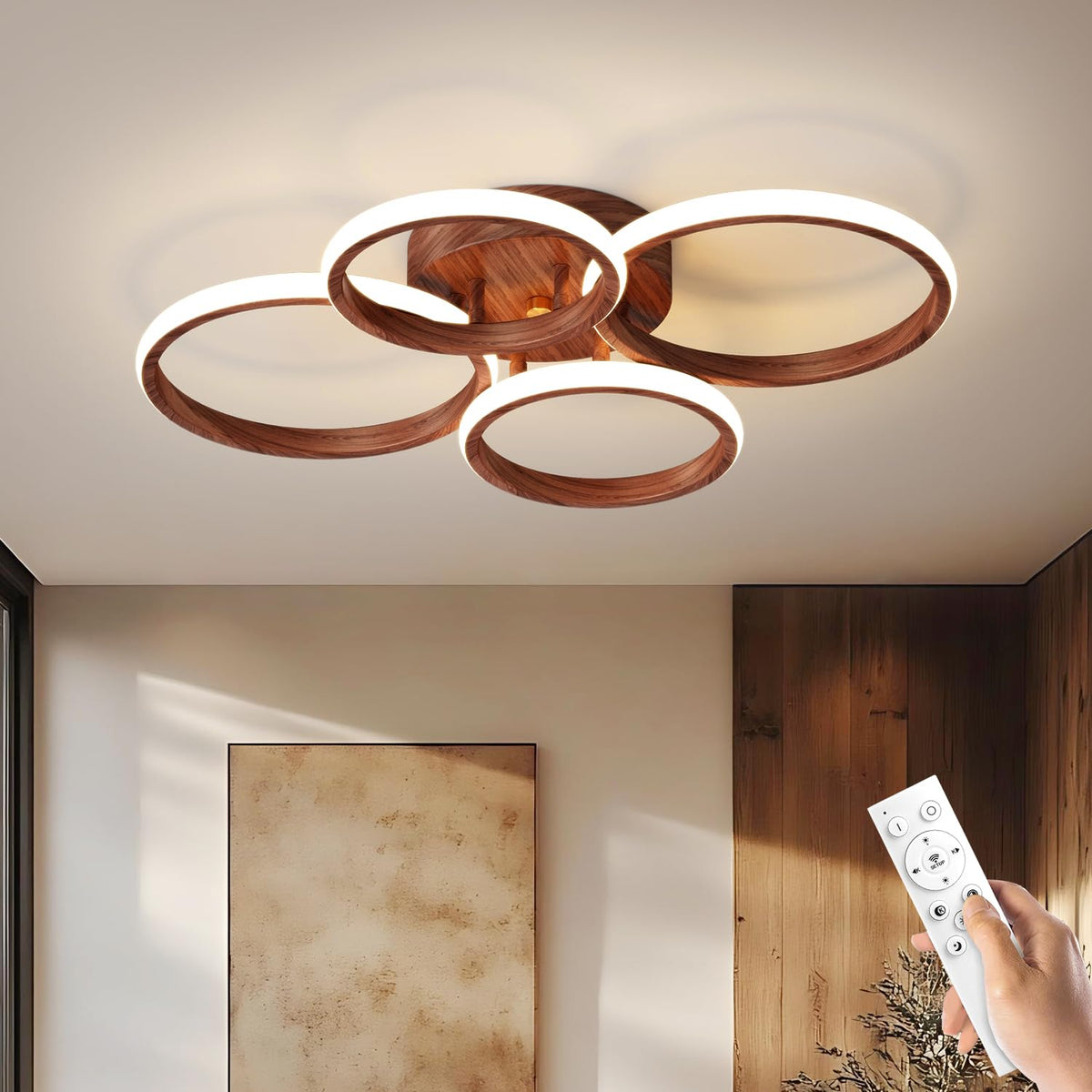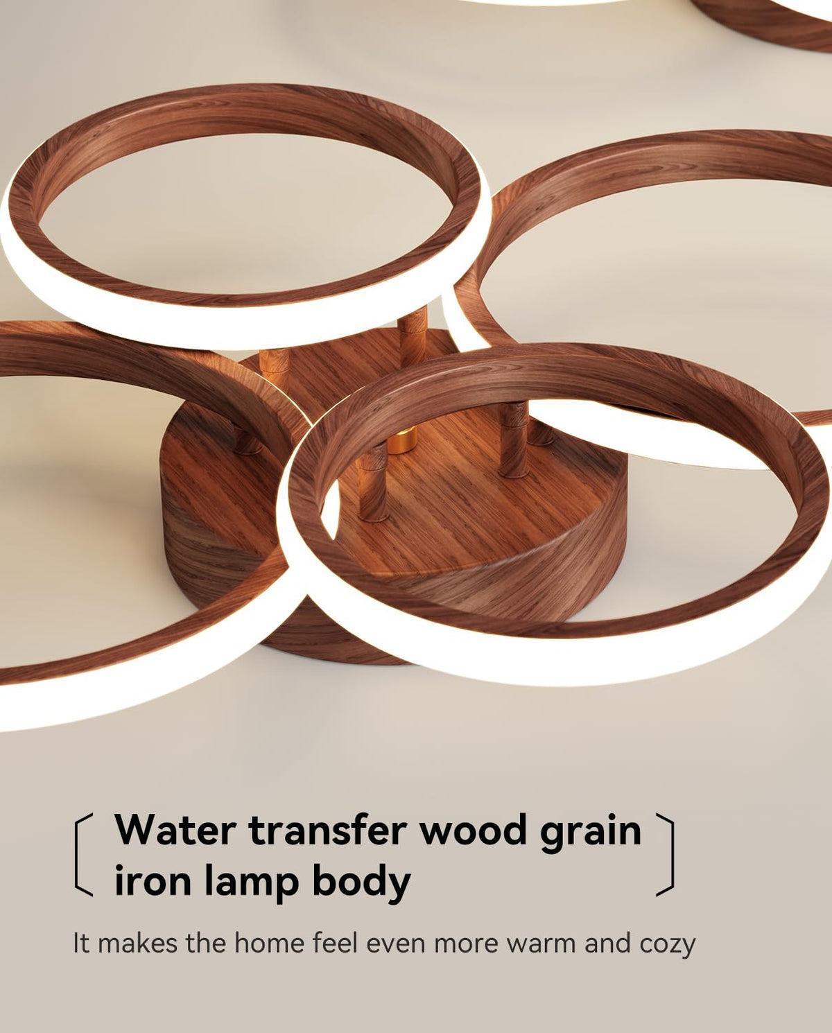 Miss Lighting Dimmable LED Semi Flush Mount Light Fixture 3-Color Dimming 4 Ring Wood Model MT05