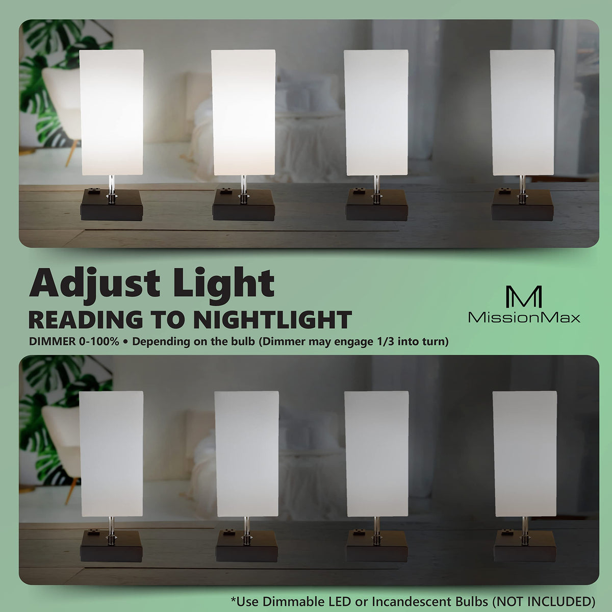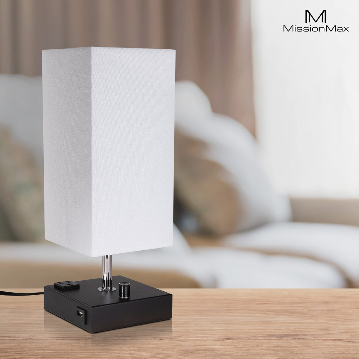 Missionmax Modern Table Lamp White Small 100% Dimmable With 2 Fast Charge Usb Ports & Grounded Outlet. Great Table Lamps For Bed