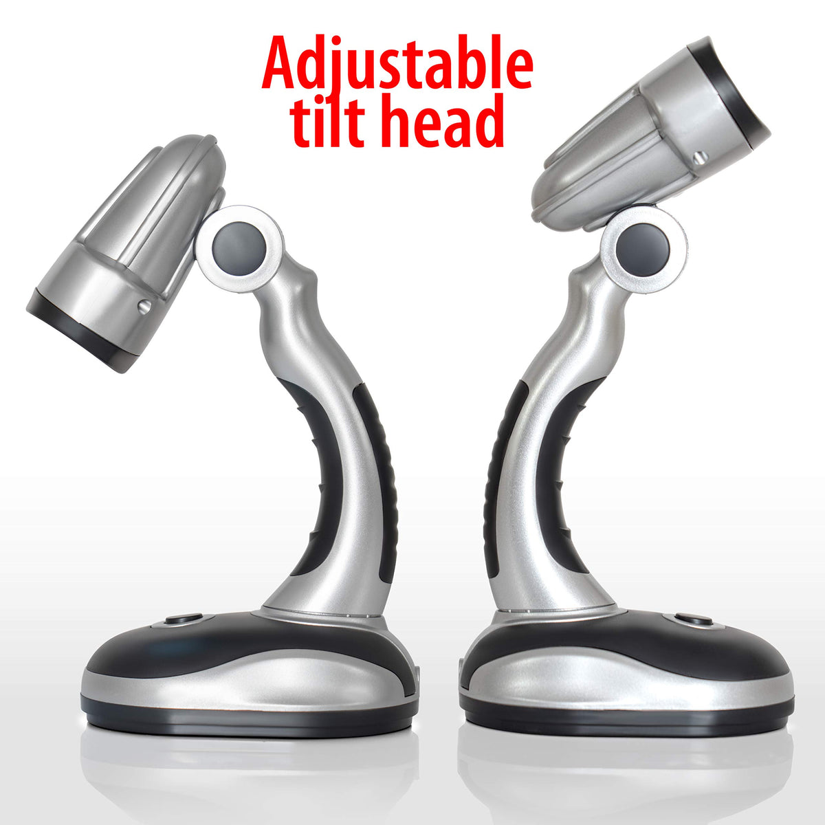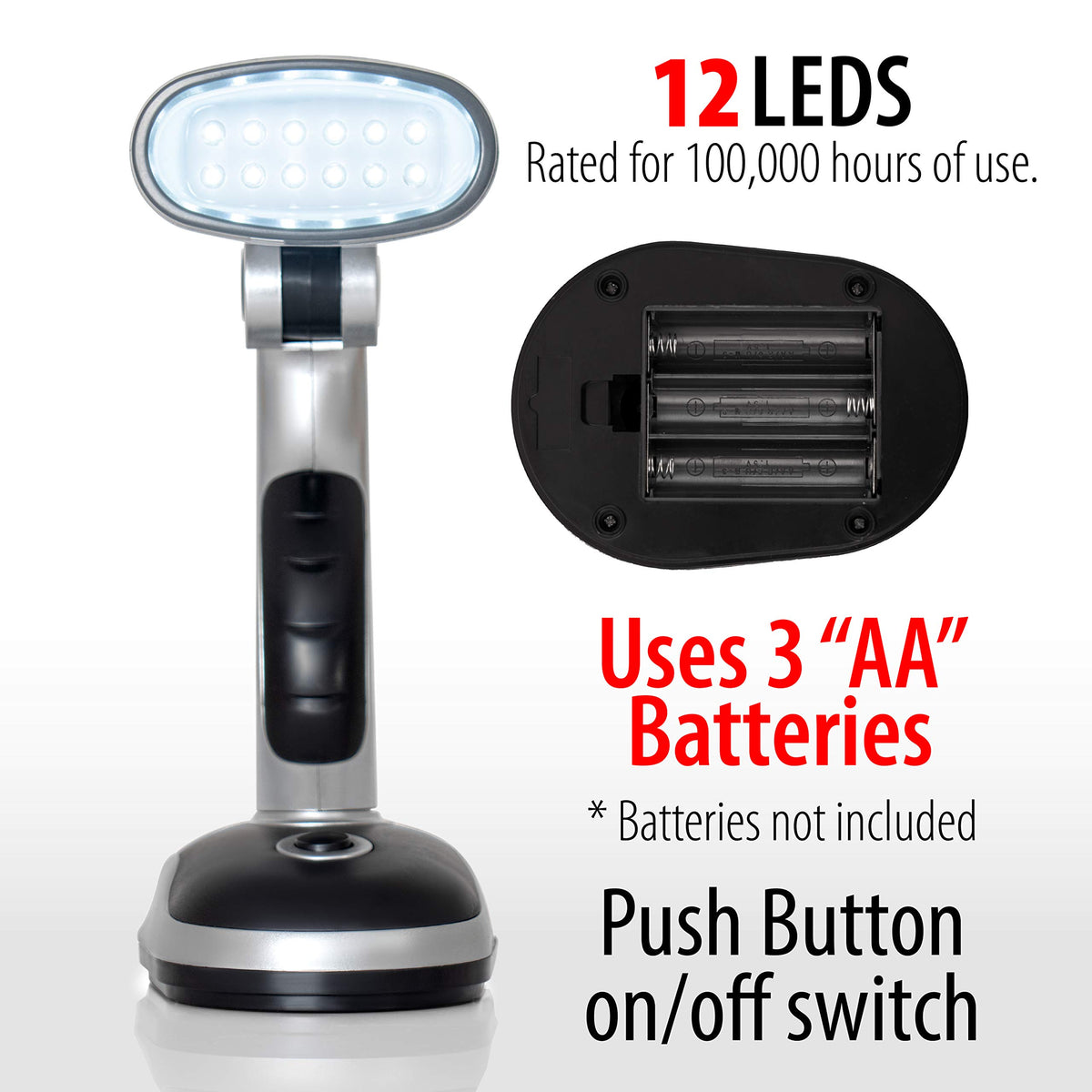 Mitaki-Japan Eldsklt Led Desk Lamp, 12-Bulb Battery-Operated Table Light For Home, Office, Silver/Black