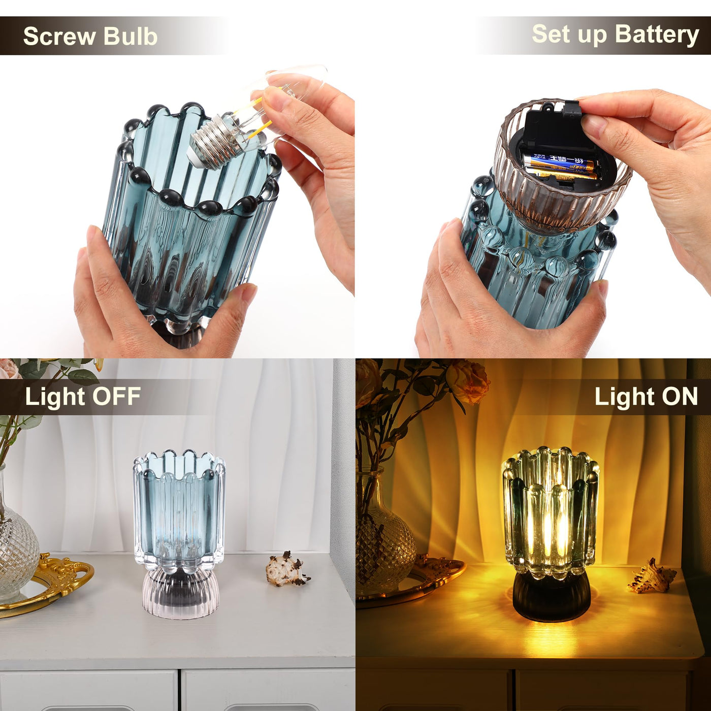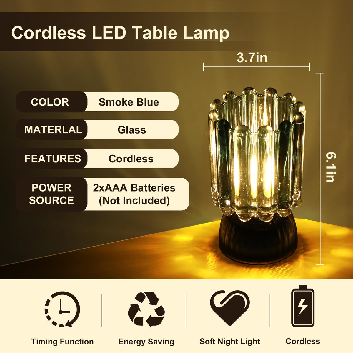 Miubrty Battery Operated Lamp With Auto-Off Timer, Cordless Table Night Light For Bedroom & Entryway, Portable Led Lamp For Home, Outdoor, Camping No Battery Included (Wine Glass Design-Smoke Blue)