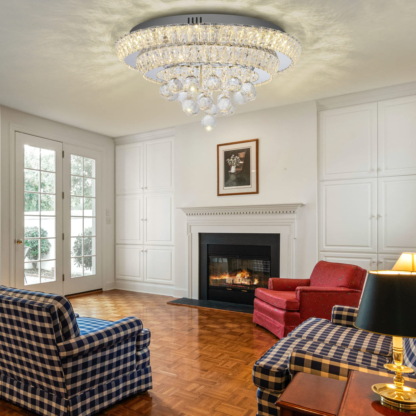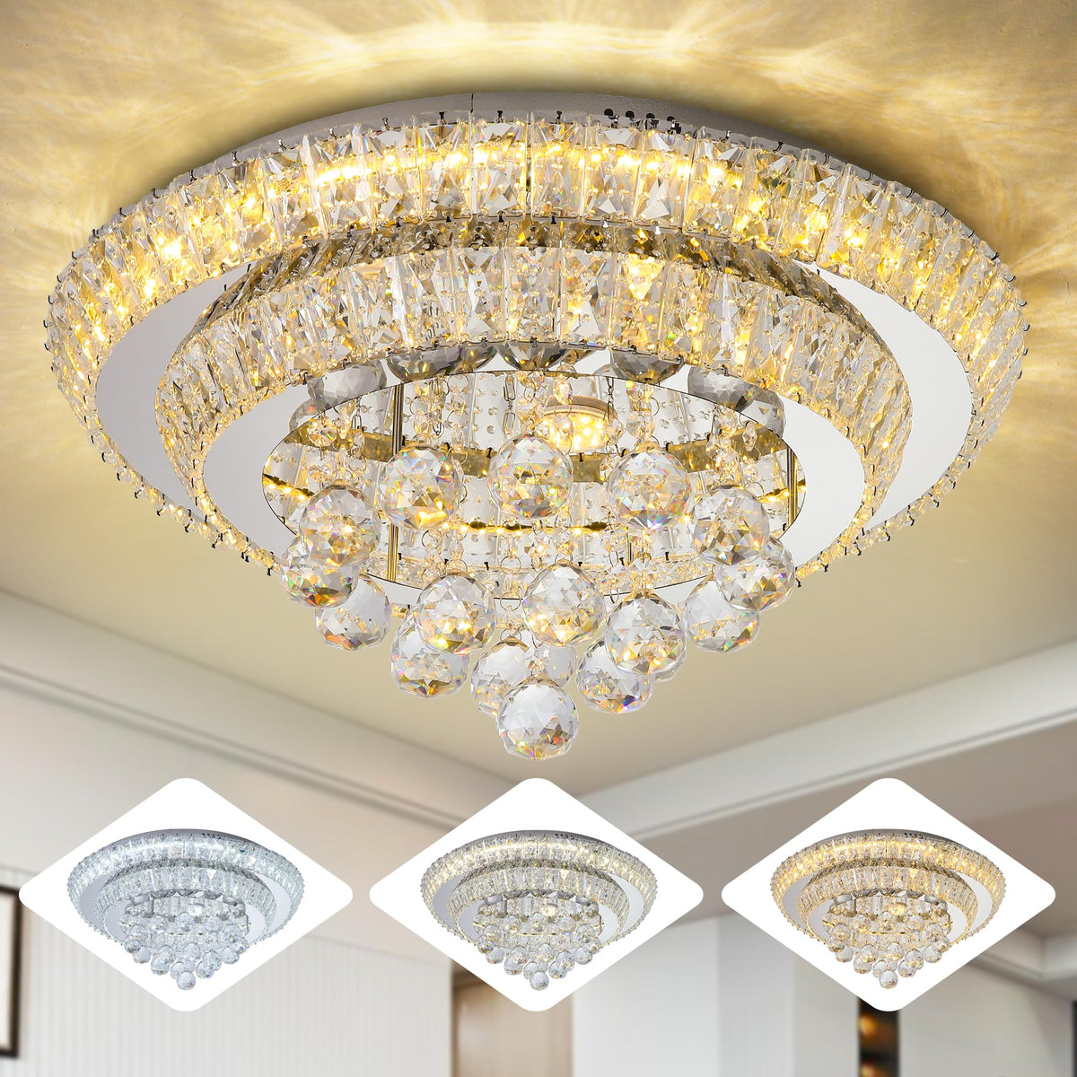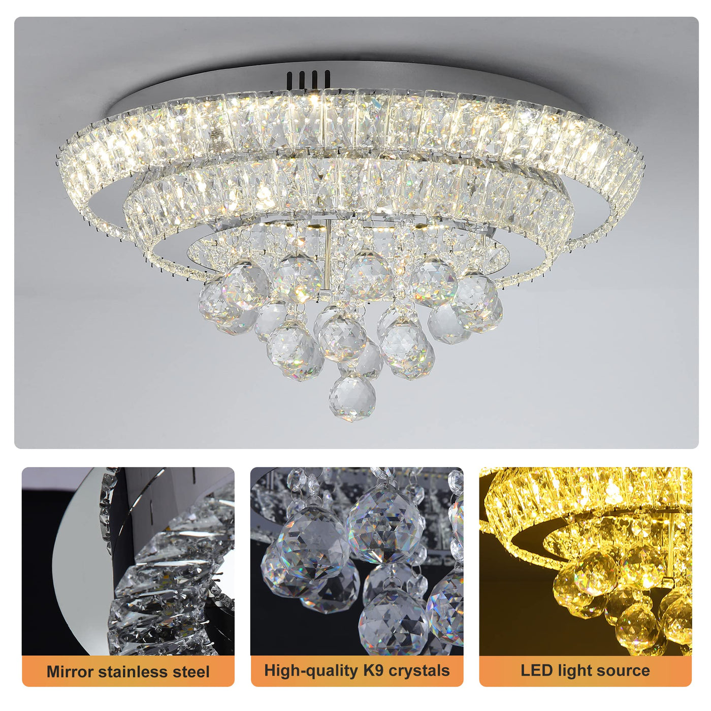 Miuyhji Elegant Led Crystal Raindrop Ceiling Light,20'' Flush Mount Chandelier Light Fixture With Remote Control For Living Room