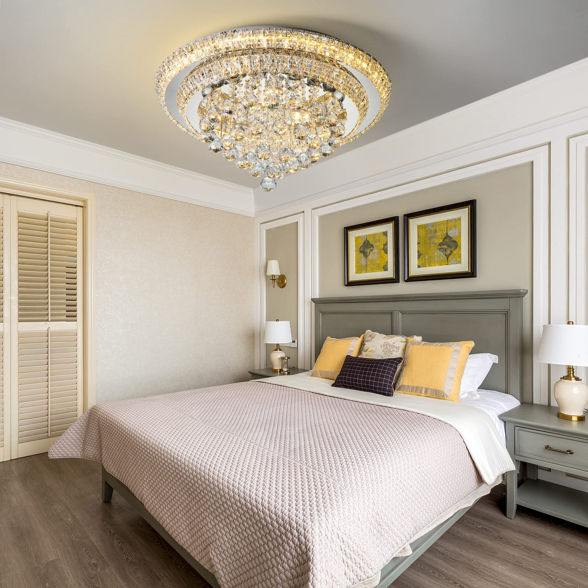 Miuyhji Elegant Led Crystal Raindrop Ceiling Light, 24'' Flush Mount Chandelier Light Fixture With Remote Control For Living Roo
