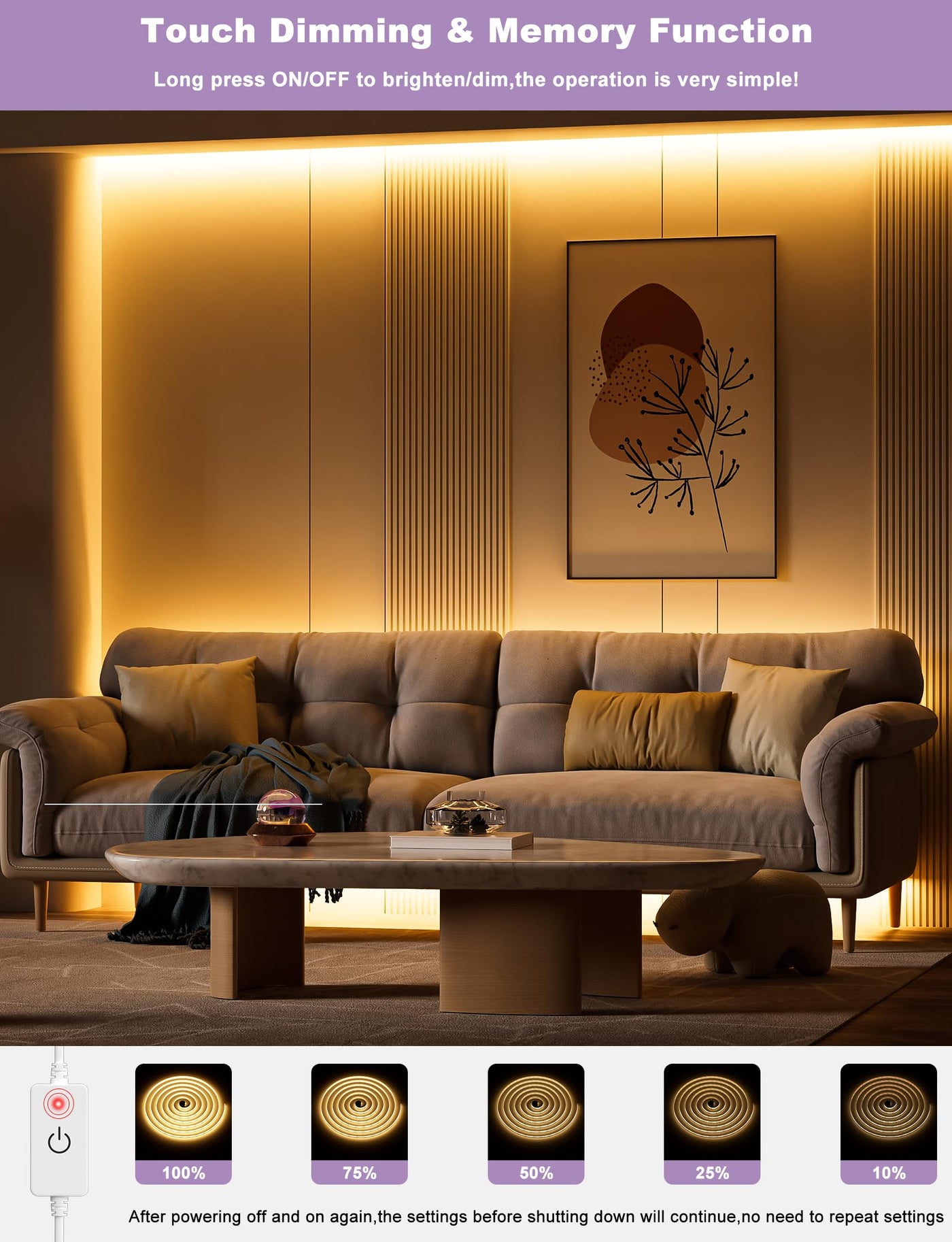 Miwise Led Strip Lights,Super Bright 5V Usb Cob Tape Light 9.84Ft/3M 2700K Warm White With Touch Dimmer Switch,Cri90+ Flexible Dimmable Tv Backlights,For Mirrors,Under Cabinet,Home Diy Projects