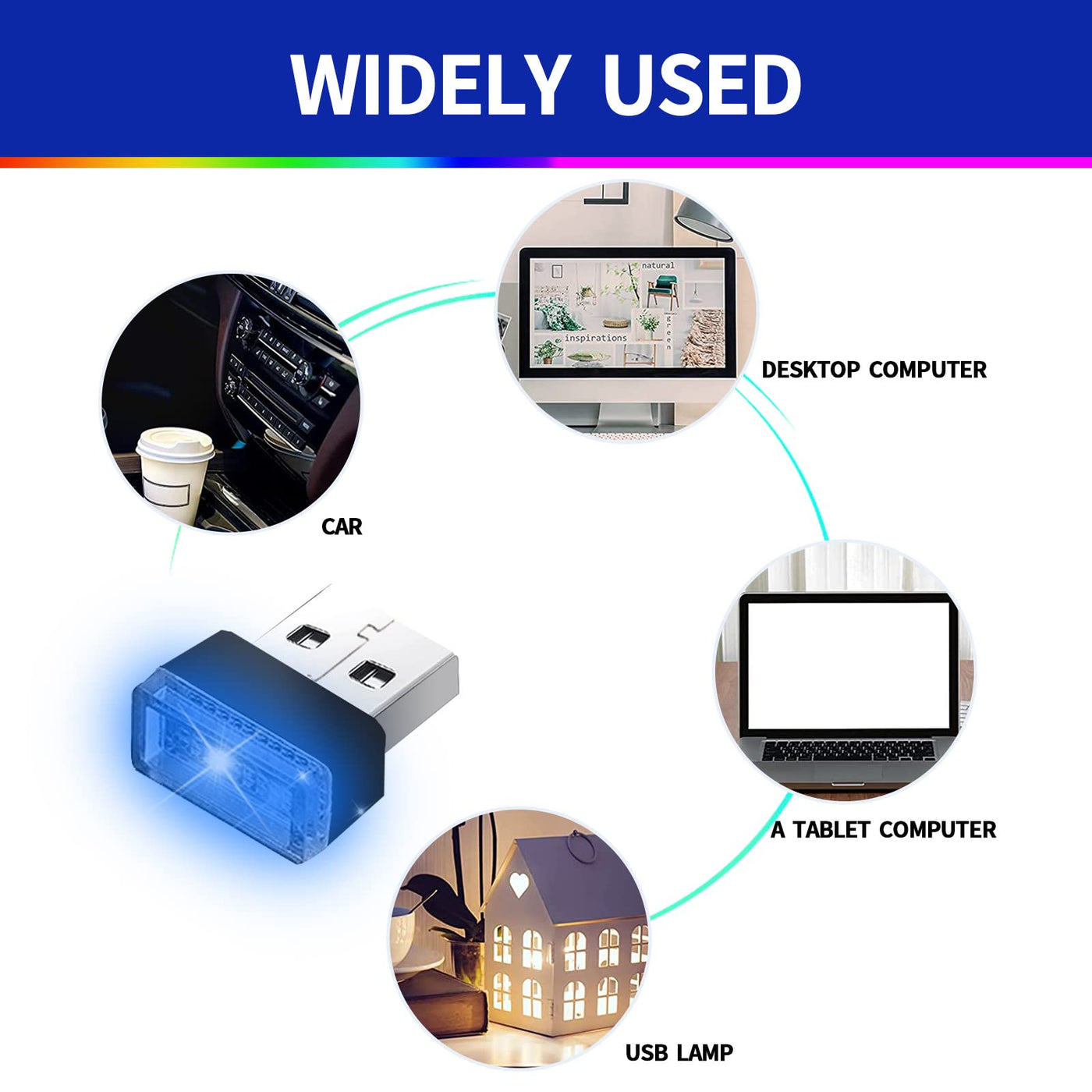 Miytsya 4 PCS USB-LED Car Interior Atmosphere Lamp, Night Led Decoration Mini USB Light, Ambient Lighting Kit, Charging for Interior Led Lights (Ice Blue)