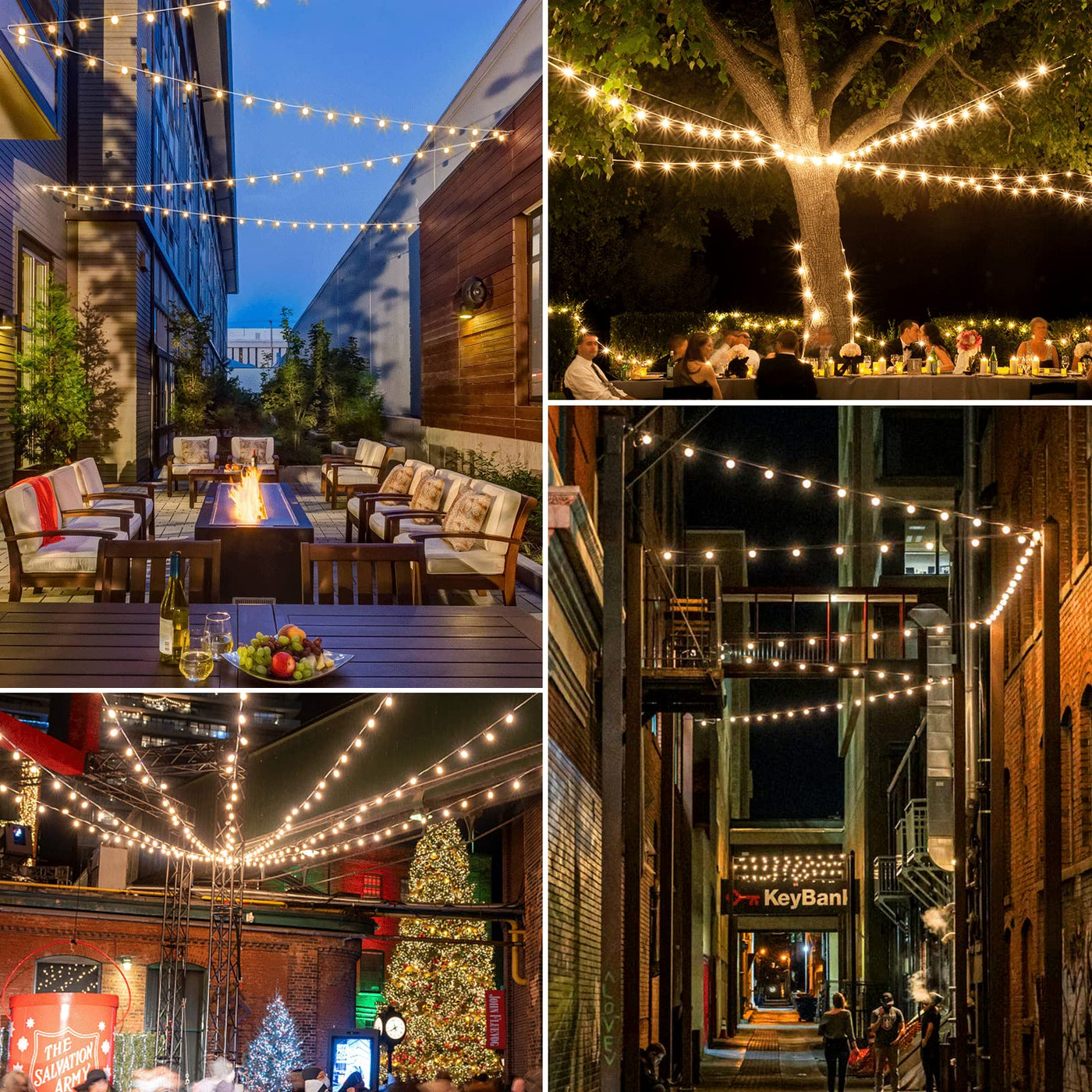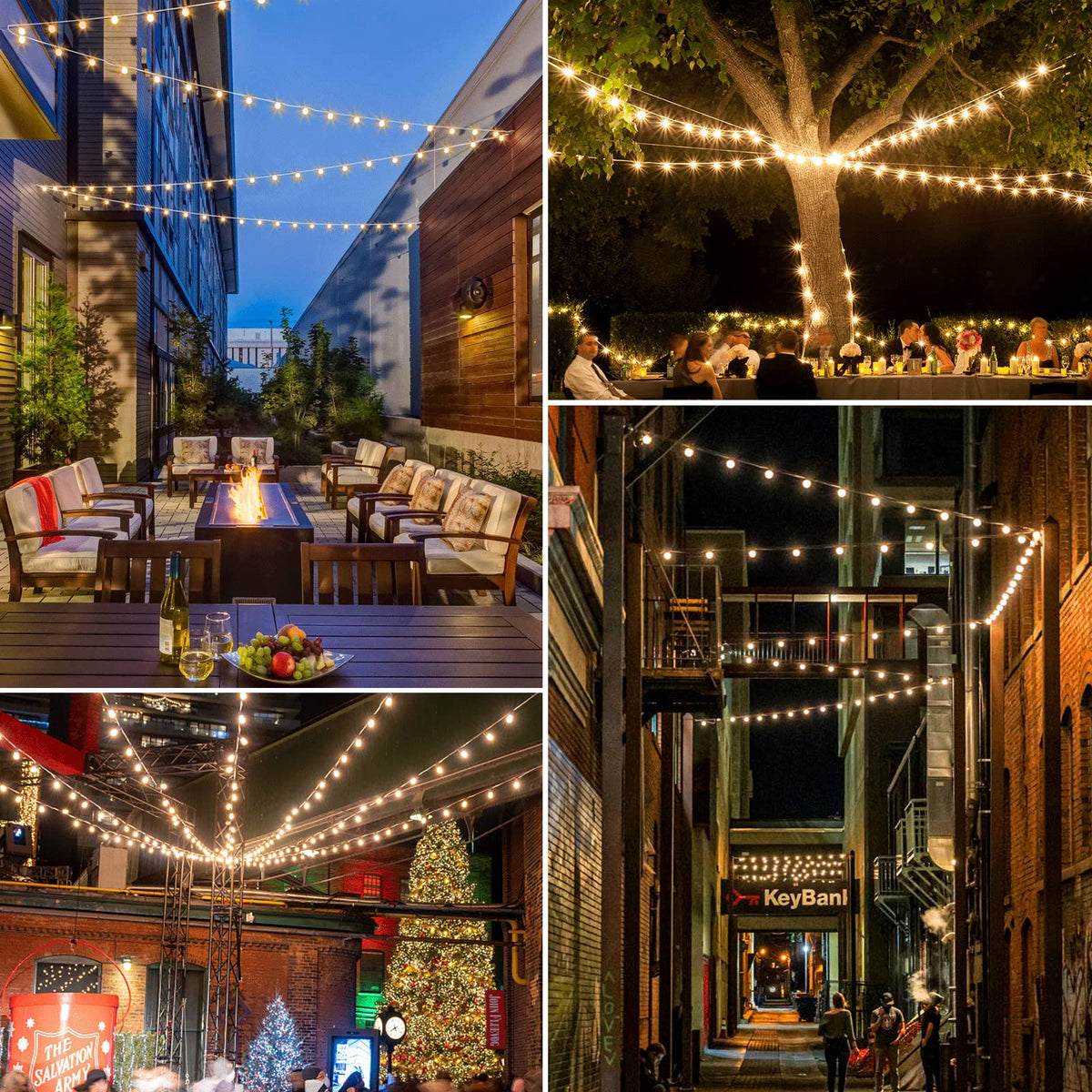 White Cord 3 Pack Led G40 Globe Patio String Lights- The Dimmable Outdoor Led Edison Bulb String Light You'Ll Love To Own Bright 2700K Warm White With Dimmable Function, Our Outdoor Led G40 Globe String Lighting Gives Off A Soft And Romantic Ambiance To Your Family And Friends With Their Aesthetic Glow For All Seasons. Perfect For Home, Porch, Patio, Backyard, Gazebo, Bistro, Cafe, Pergola, Garden, Balcony, Deck, Christmas, Party Decoration, Etc. If You'Ve Looked Through Our Outdoor Patio String Lights, You Will Know This G40 Christmas Decoration Light String Is The One For You! If You Haven'T Looked Through Other Gazebo String Lights, No Need To Waste Your Time As This Is The One For You! Here Are Some Important Features Of These Cafe Lights For What You Get: Excellent 0%-100% Light Brightness Dimming (Dimmer Is Bot Included) 3 Pack 50Ft Globe Waterproof String Lights Strands - Bulb Spacing: 1.97 Ft Energy-Saving 75+(6 Spare) Led G40 Clear Plastic Bulbs, E12 Socket Base Connectable- Up To 19 Strands Length Maximum, But Low Heat Double Fuses Inside The Plug - Safe To Use, Plug-In Strings, Plug And Play. Easy To Install Flexible Mounting Options, Use Cup Hooks, Guide Wires Or Zip Ties With The Built-In Loops To Hang The 50Ft Outdoor Lighting Perfectly.