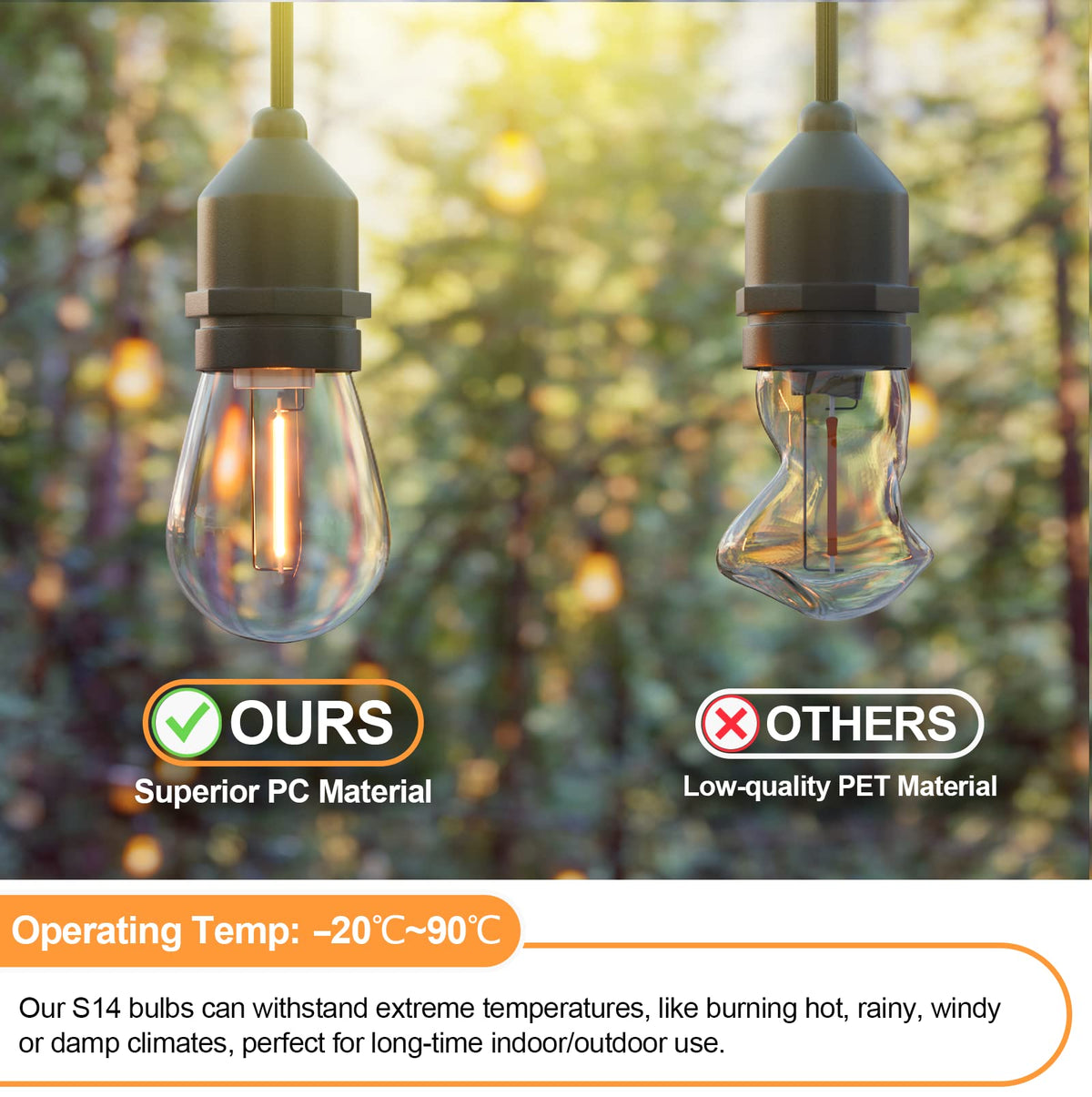 Mlambert Led String Light Bulbs, Shatterproof Outdoor S14 Replacement Light Bulb 2200K, Waterproof 1W Led Edison Bulbs Equal To 11W,Not Solar,15Pack