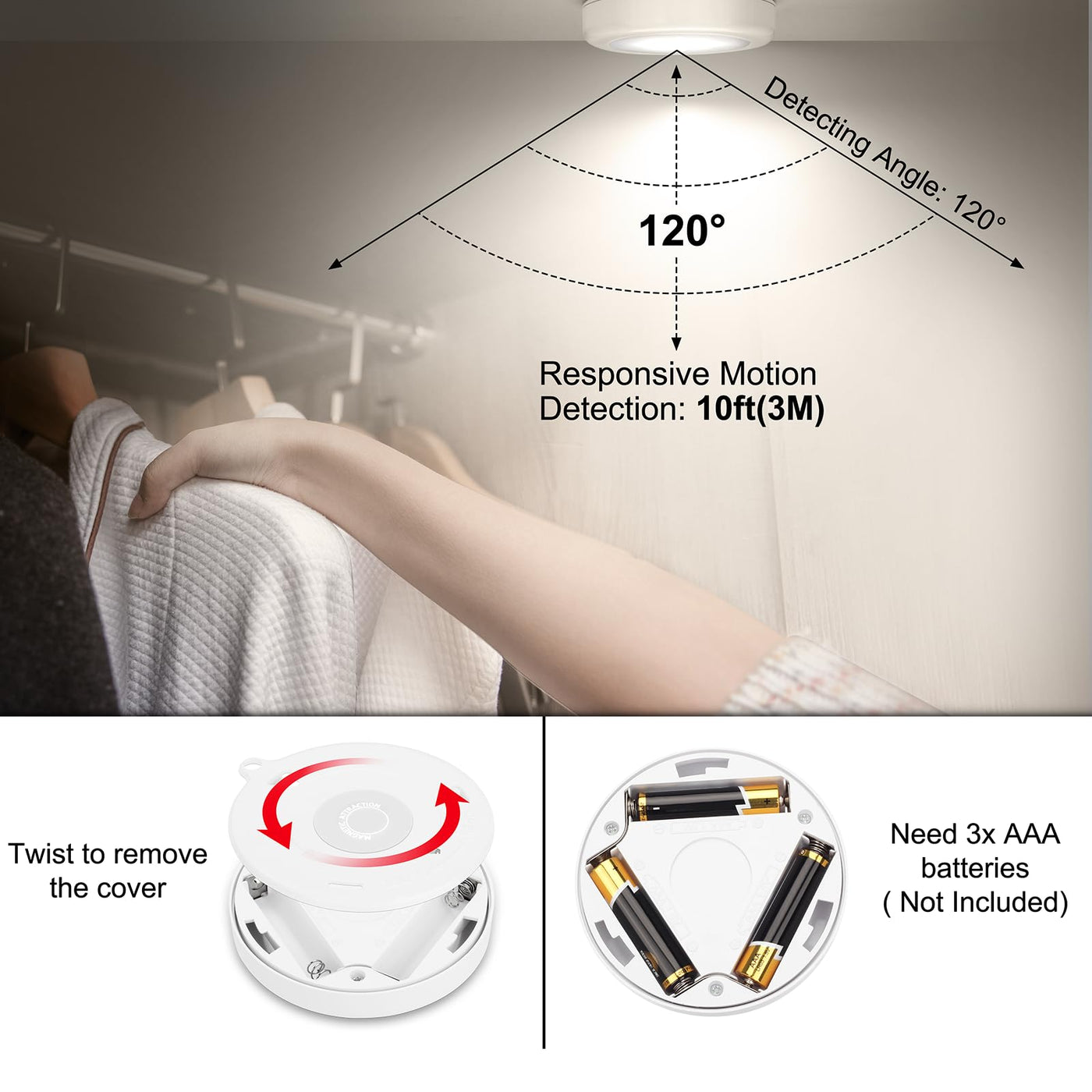 Constructed from durable plastic, the Mlambert Motion Sensor Light features advanced PIR technology that detects motion within a 10-foot range and turns on in darkness. With a 120° beam angle and an output of 35 lumens, this light is brighter than many competitors, providing ample illumination to prevent stumbles and falls. The unit is battery-operated, allowing for easy installation in locations without access to electricity. Simply replace the AAA batteries as needed; they are not included with the product.