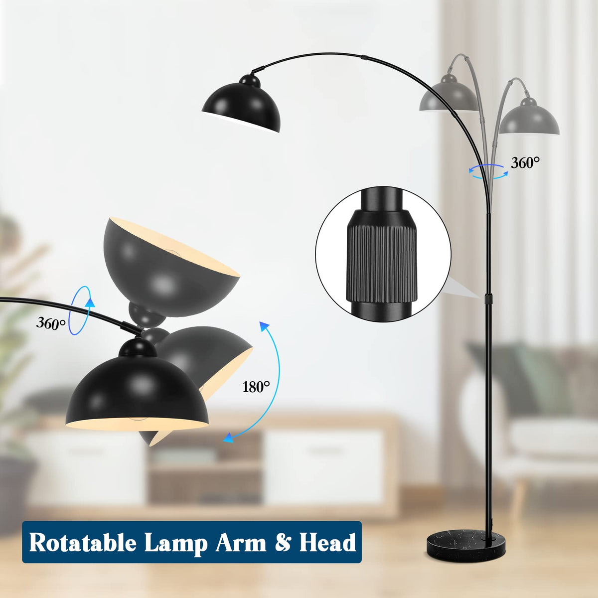 Q: Can the lamp arm and shade be adjusted for different lighting angles?A: Yes, the Modern Arc Floor Lamp features a 360° rotatable lamp head and arm, allowing you to adjust the light direction both horizontally and vertically. This flexibility makes it ideal for focusing light on your reading area or workspace.