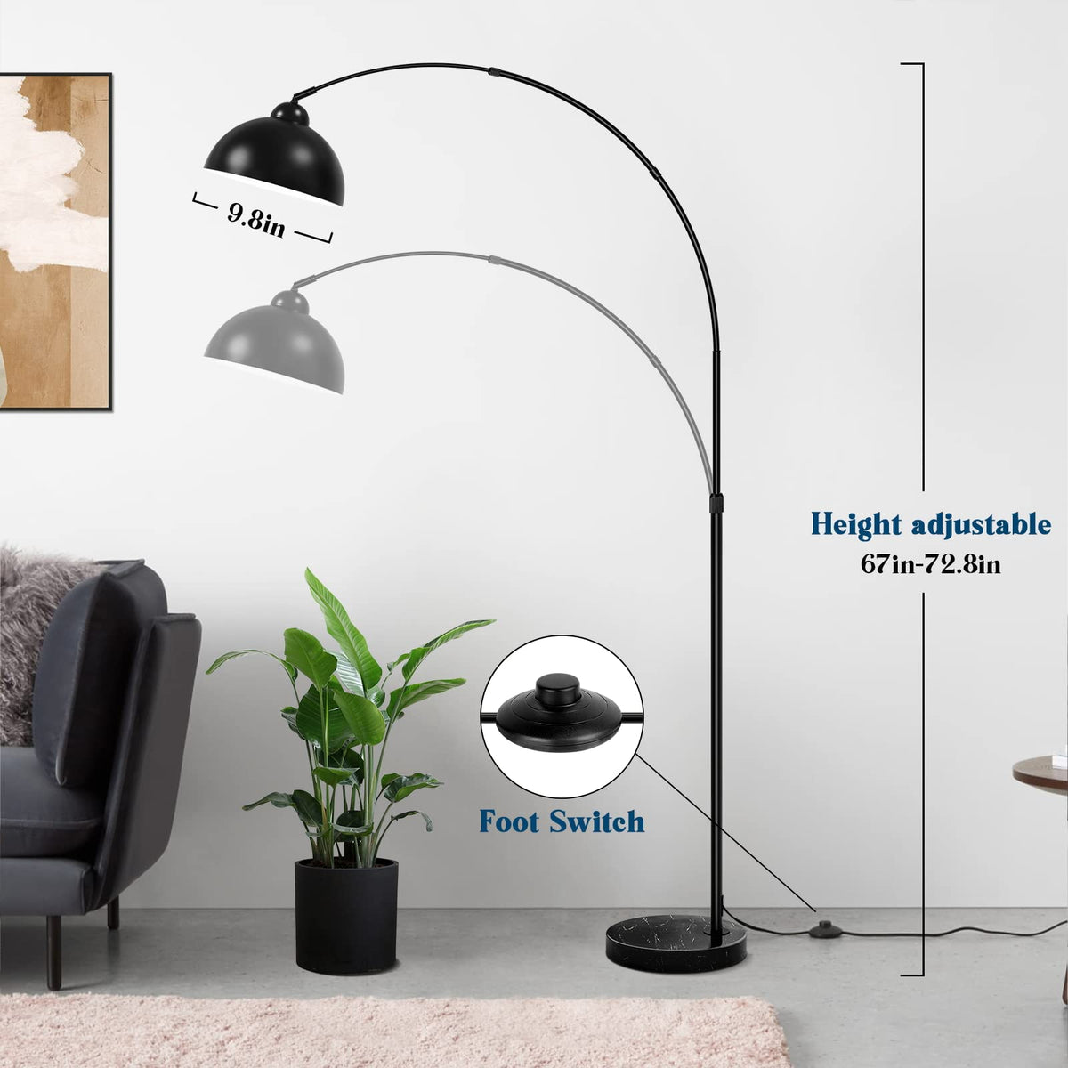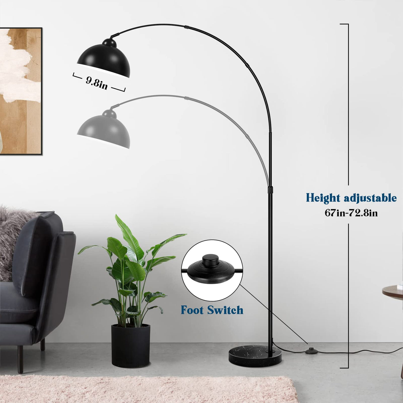 Modern Arc Floor Lamp With Metal Hanging Dome Shade, Industrial Adjustable Over The Couch Stand Up Light, Marble Base Farmhouse