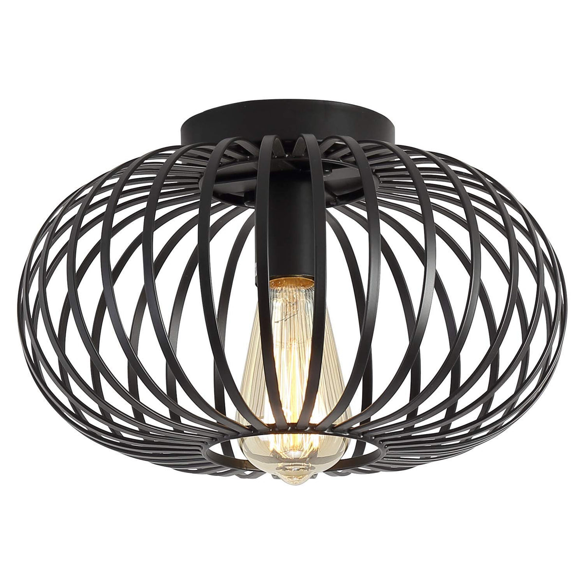 Modern Black Flush Mount Light Fixture Industrial Metal Cage Semi Flush Mount Ceiling Light For Hallway Living Room Kitchen Entryway Farmhouse