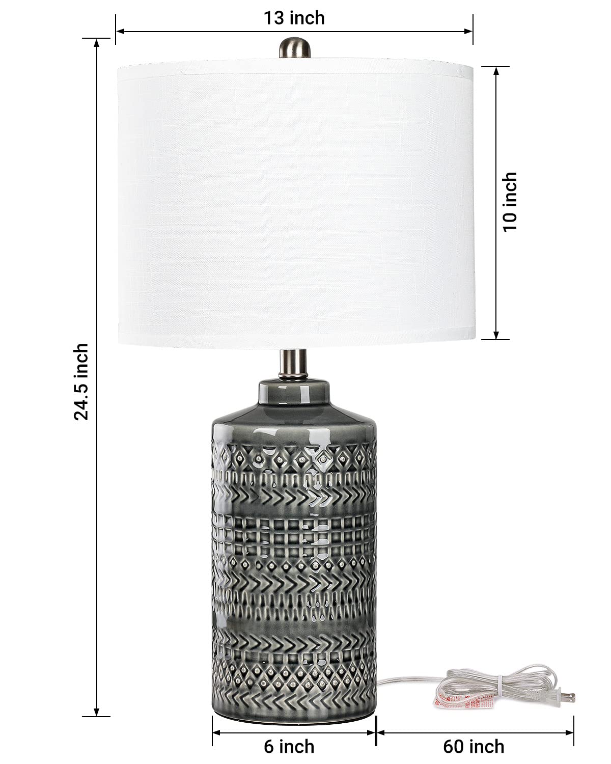 Contemporary Design & Perfect Size: Standing at 24.5 inches high with a 6-inch wide base, this gray ceramic lamp is designed for stability and elegance. Its ideal size makes it a great addition to end tables, corner tables, office desks, and nightstands.