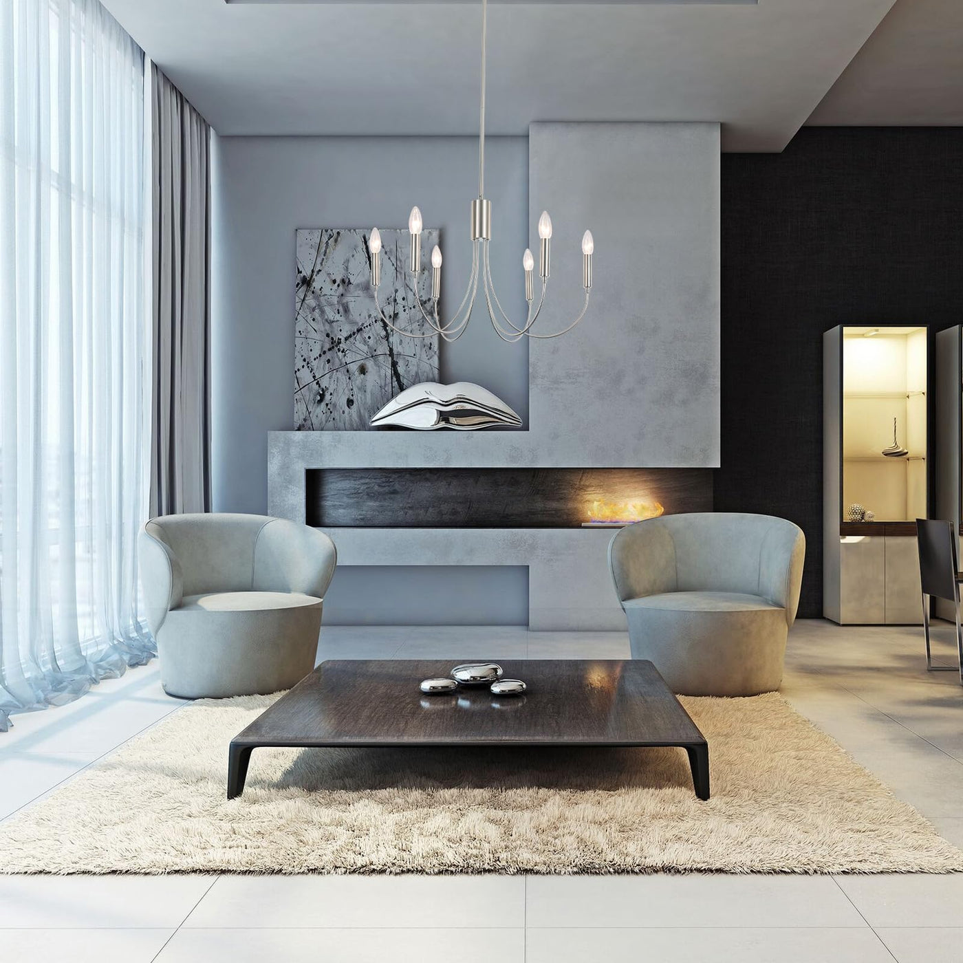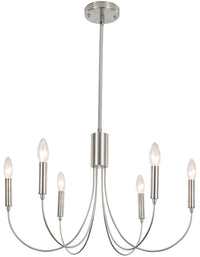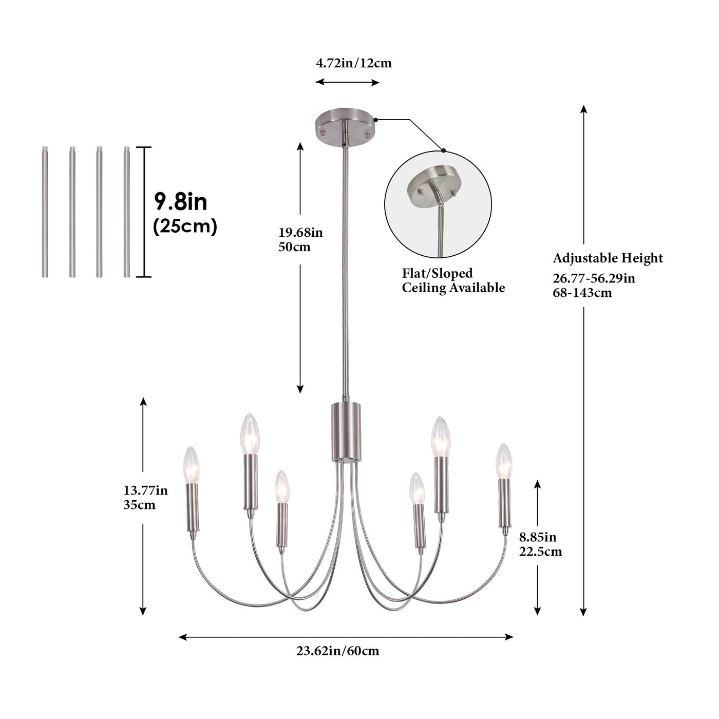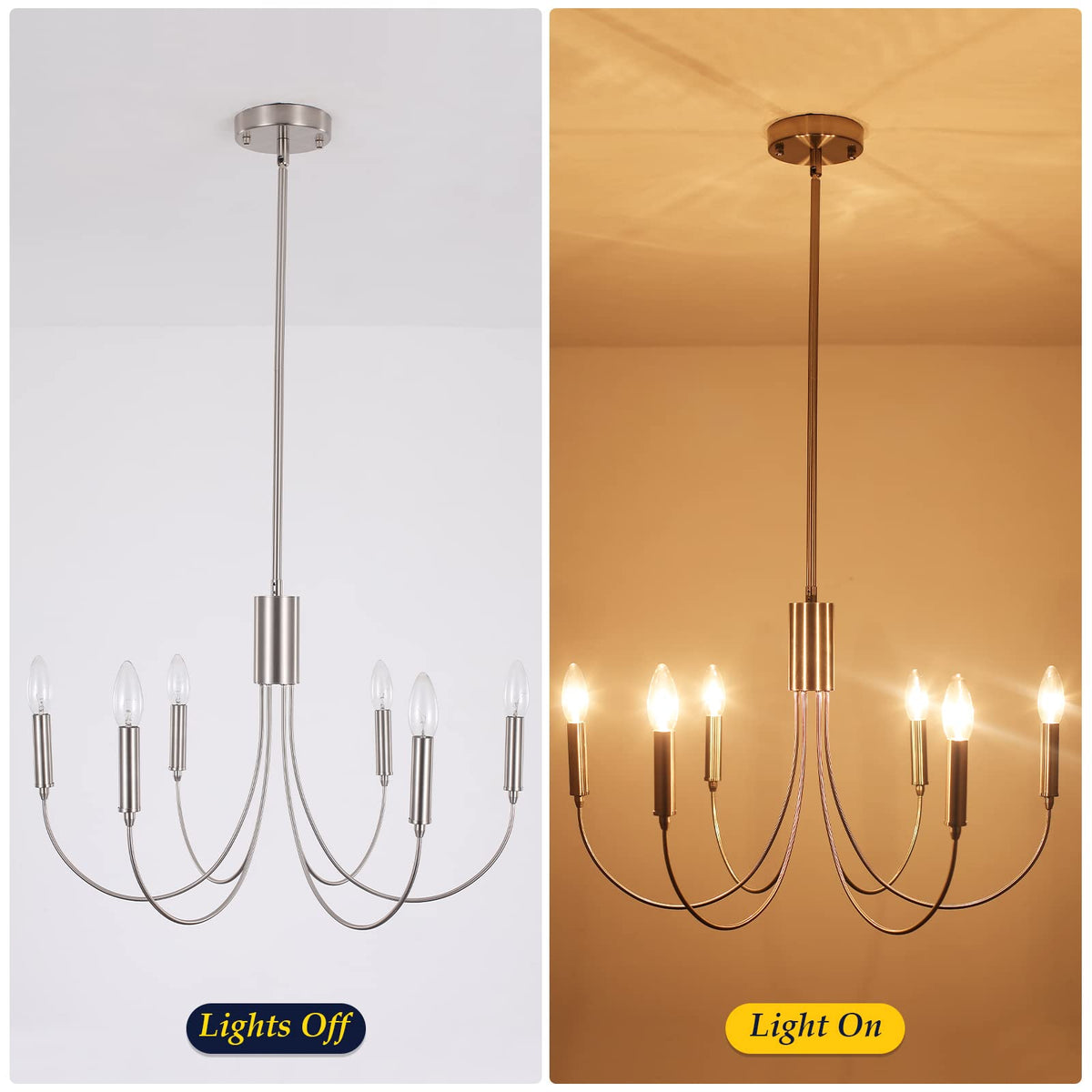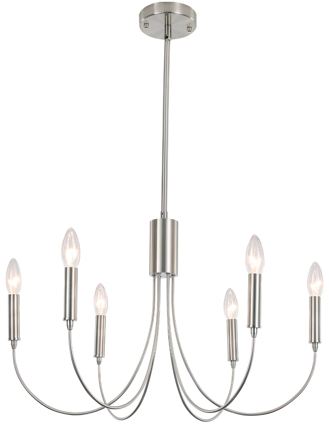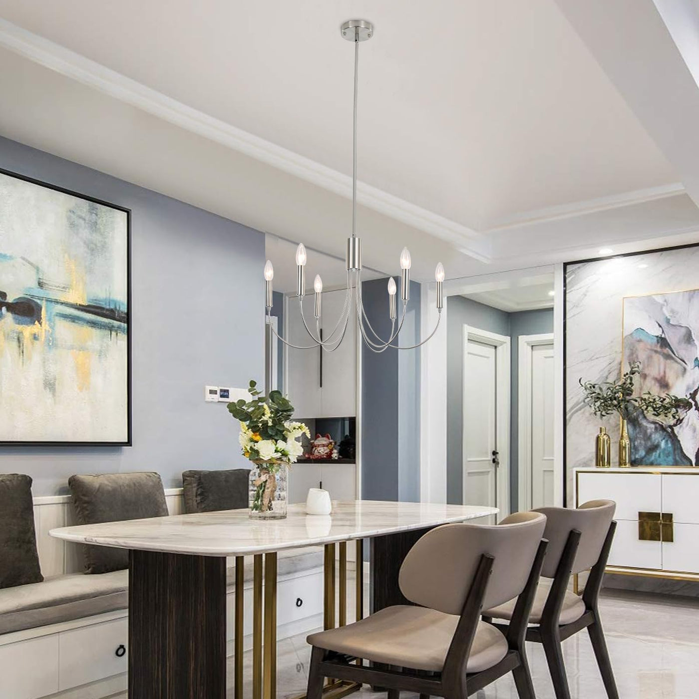 Modern Chandeliers For Dining Room, 6-Lights Vintage Farmhouse Chandeliers, Large Brushed Nickel Hanging Light Fixture For Dinin