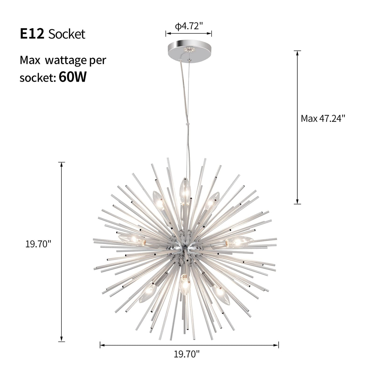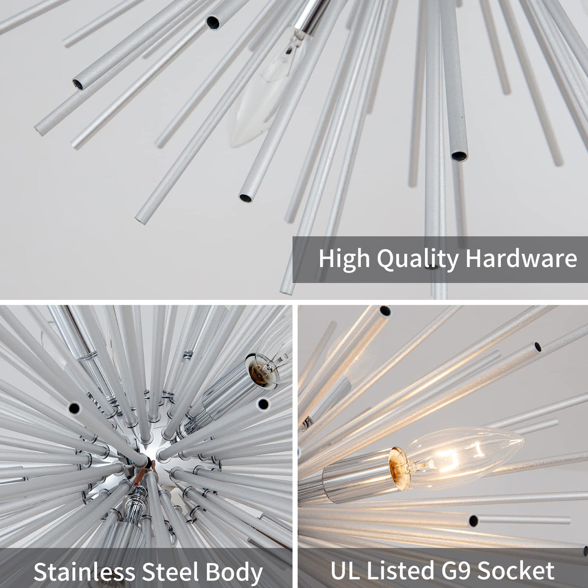 Modern Chrome Sputnik Chandeliers, 9-Light Satellite Pendant Light Fixtures, Starburst Firework Ceiling Lights For Bedroom Livin