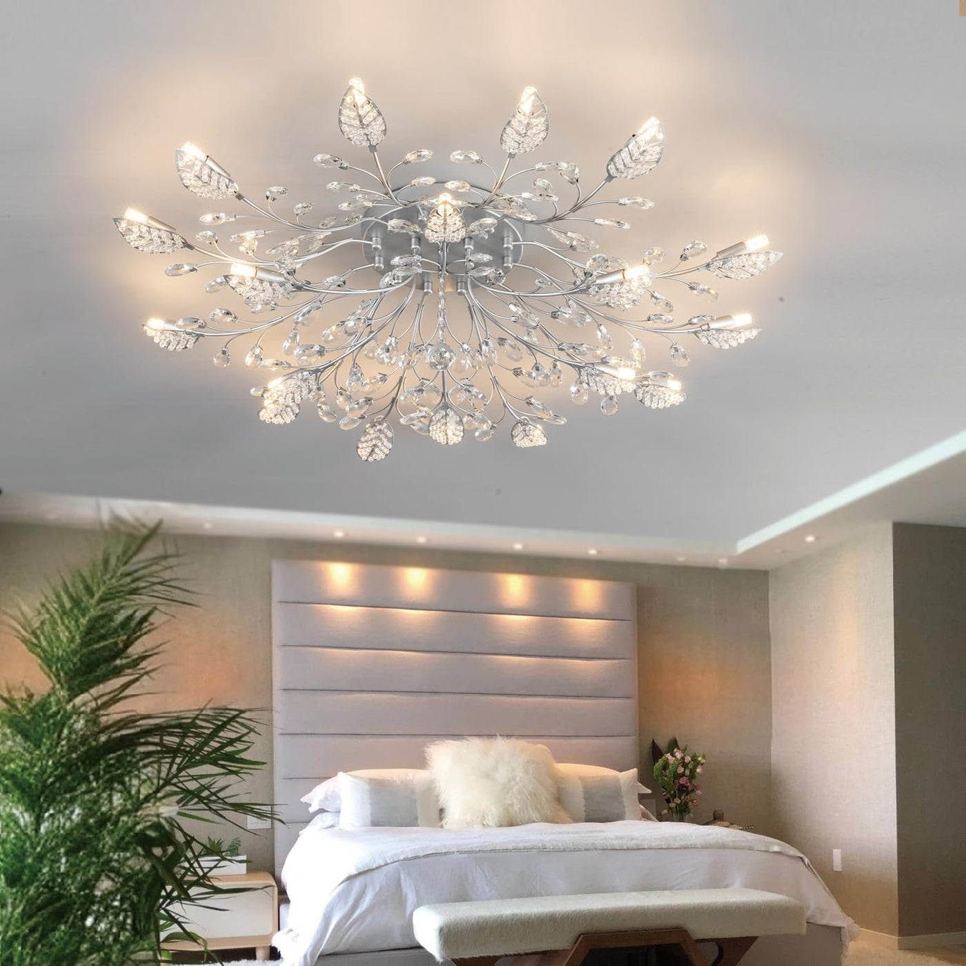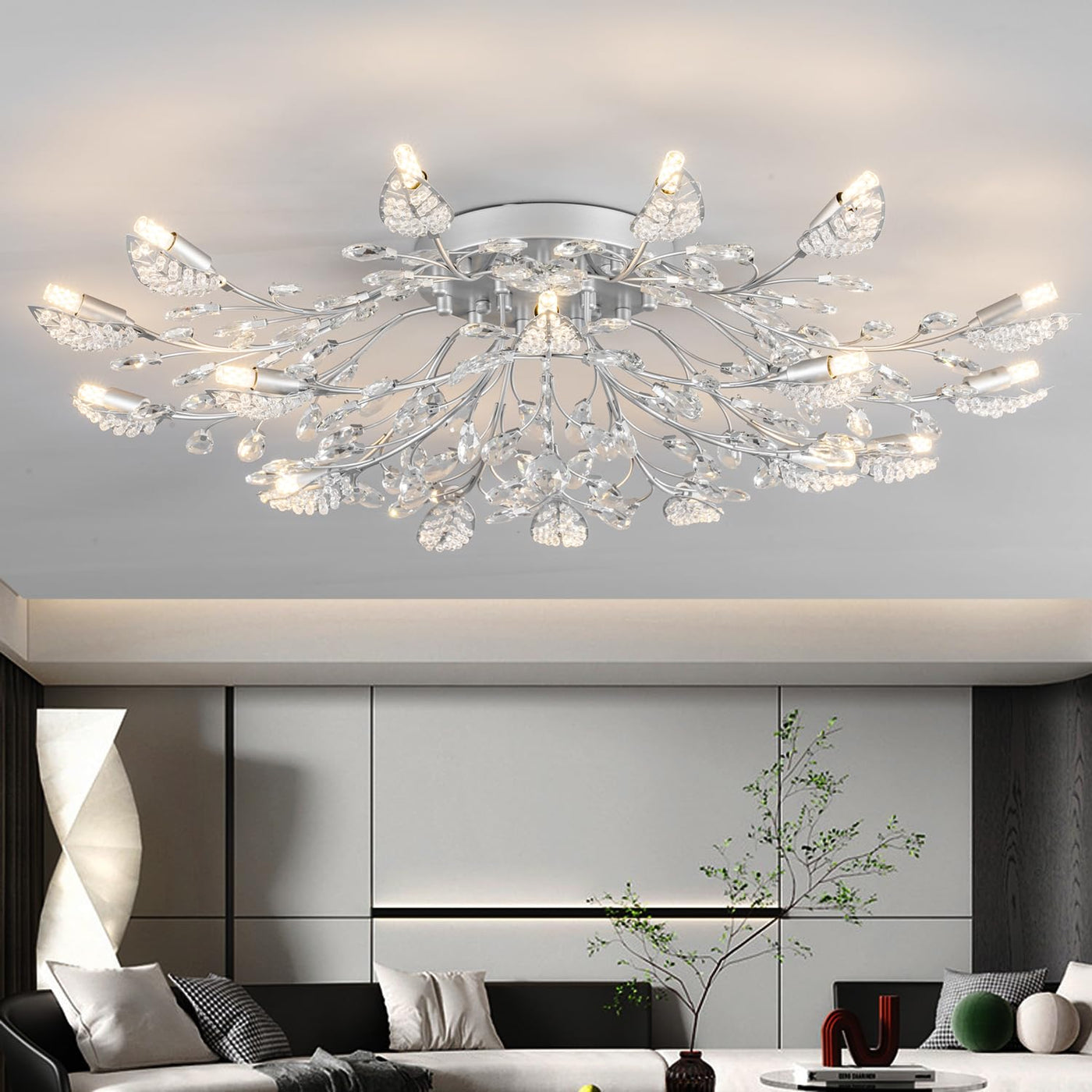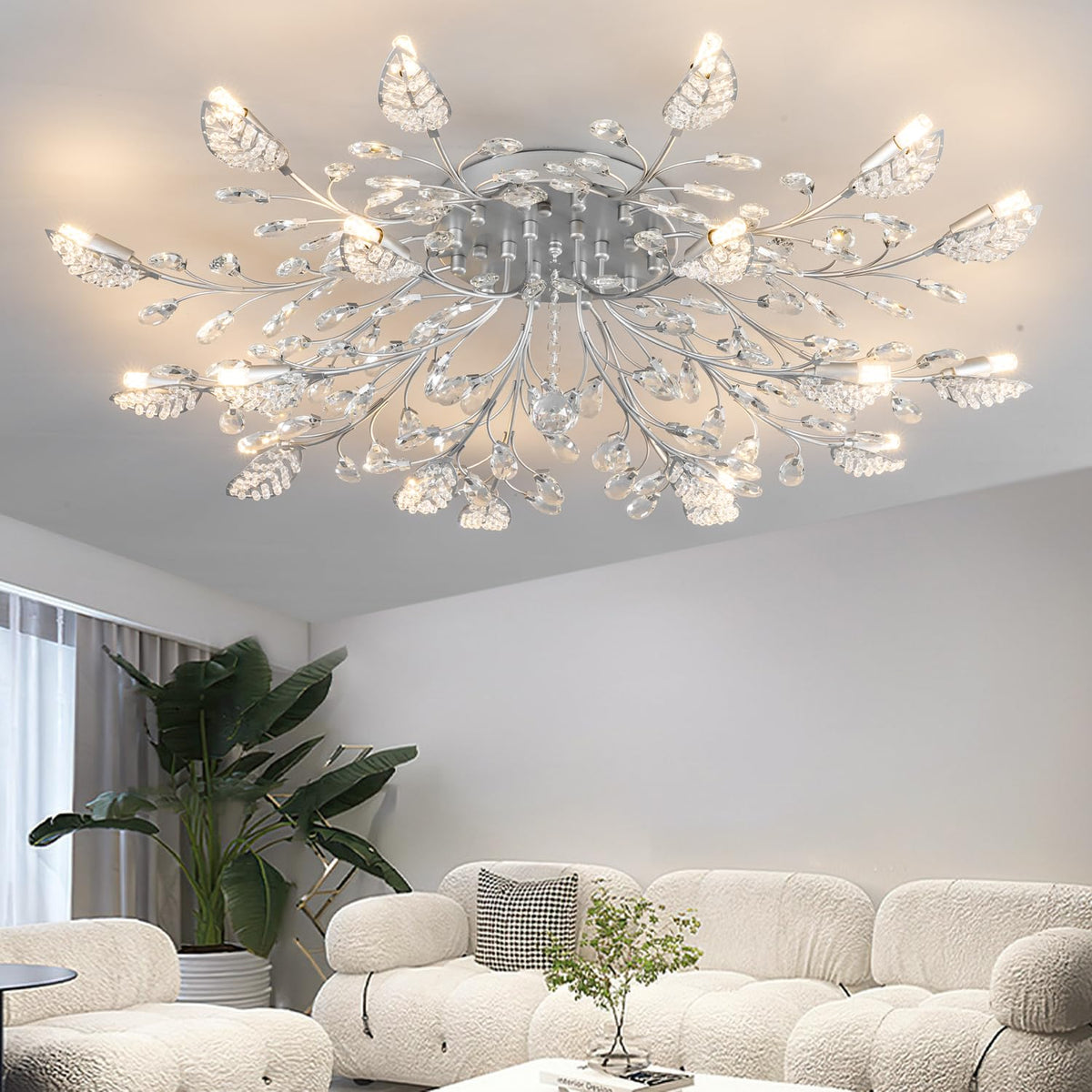 Silvery Vintage Large Crystal Branches Chandeliers Silvery Close To Ceiling Light Flush Mount Fixture With 18 Light 39.5'' Modern Crystal Ceiling Light Fixture Semi Flush Mount Chandeliers Chandeliers For Dining Room Crystal Leaf Ceiling Light Dining Room Light Fixture Modern Dining Room Light Fixture Flush Ceiling Light Fixture Crystal Ceiling Light Fixture Flush Mount Crystal Chandelier Living Room Lamps Modern Living Room Light Fixture Gold Silvery Crystal Flush Mount Light Fixtures Bedroom