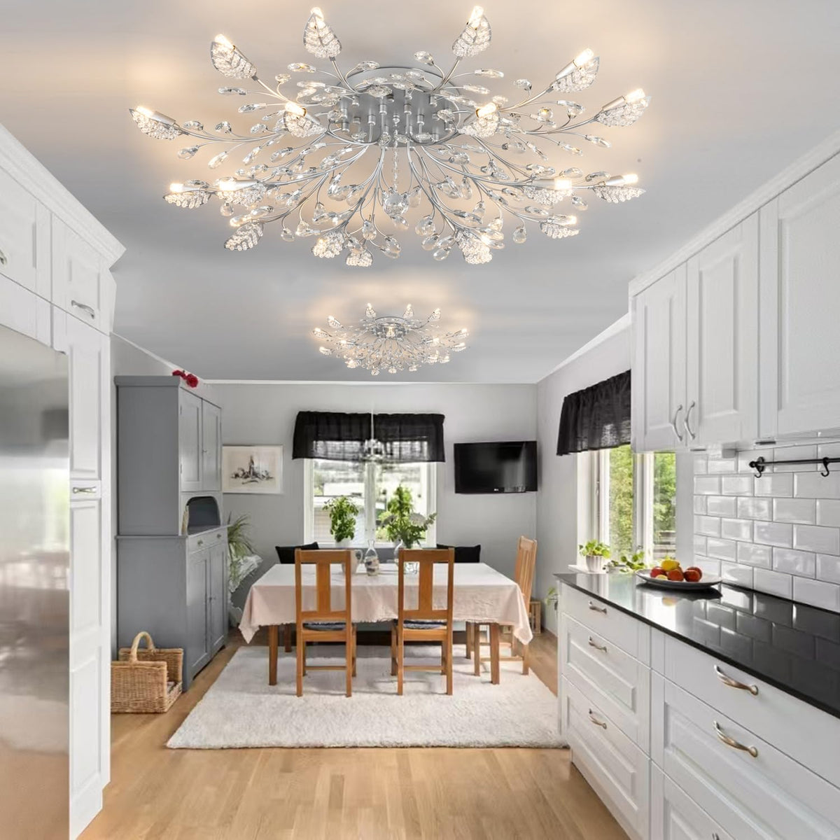 Modern Crystal Ceiling Light Fixture,Silvery Semi Flush Mount Chandeliers,Crystal Leaf Ceiling Light, Chandeliers For Dining Roo