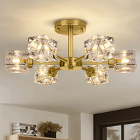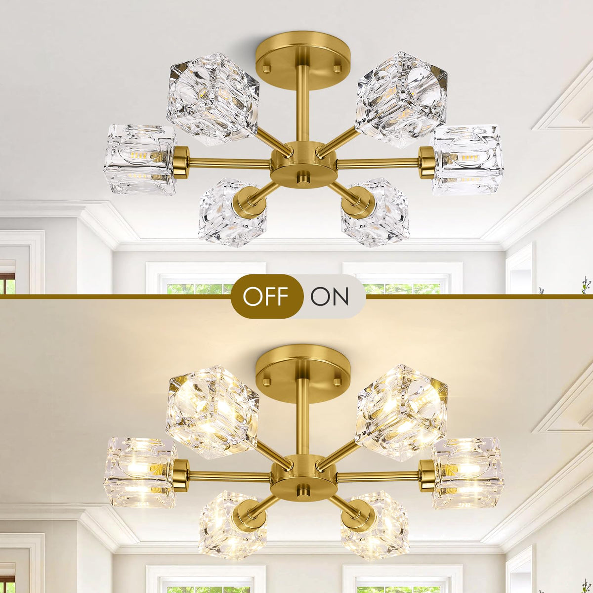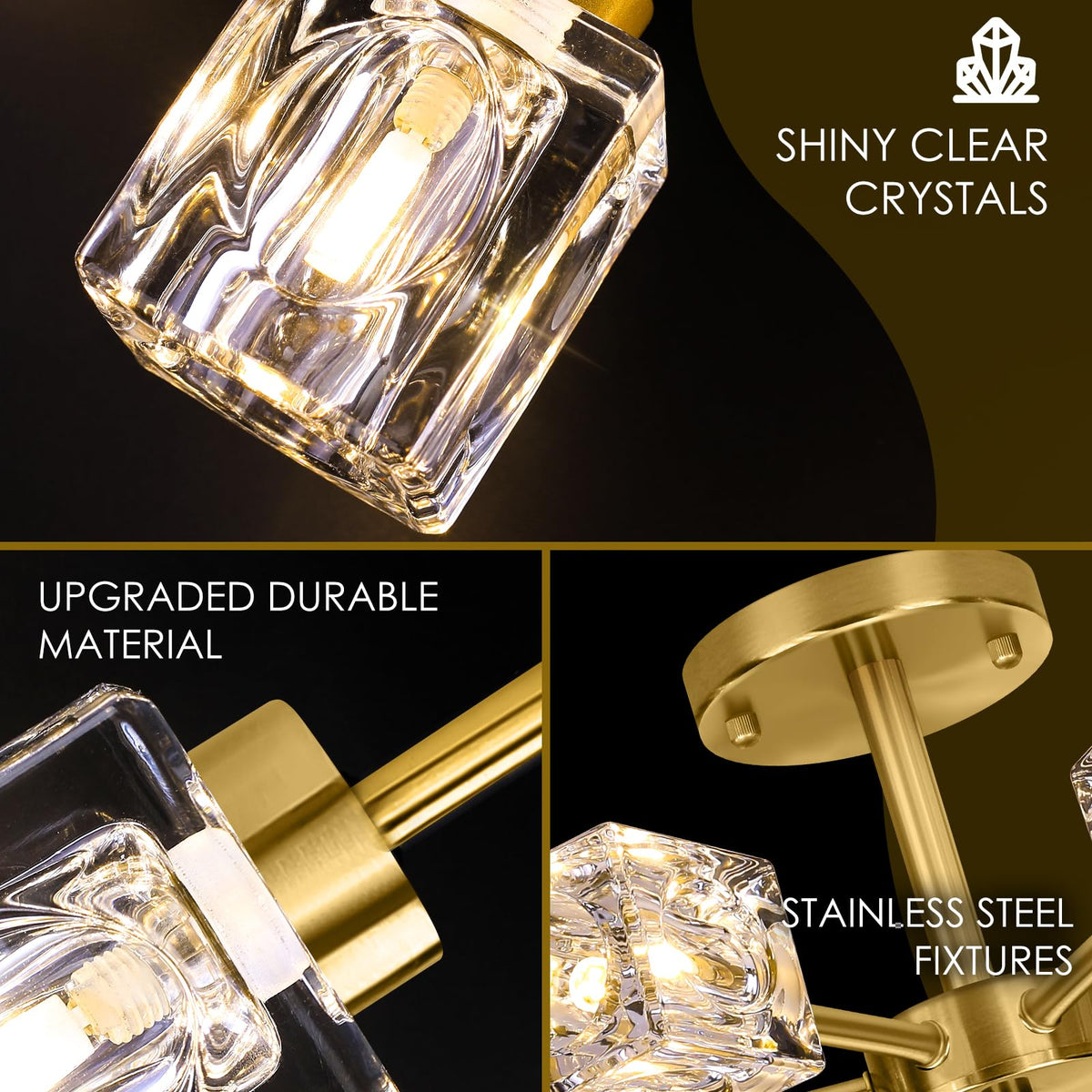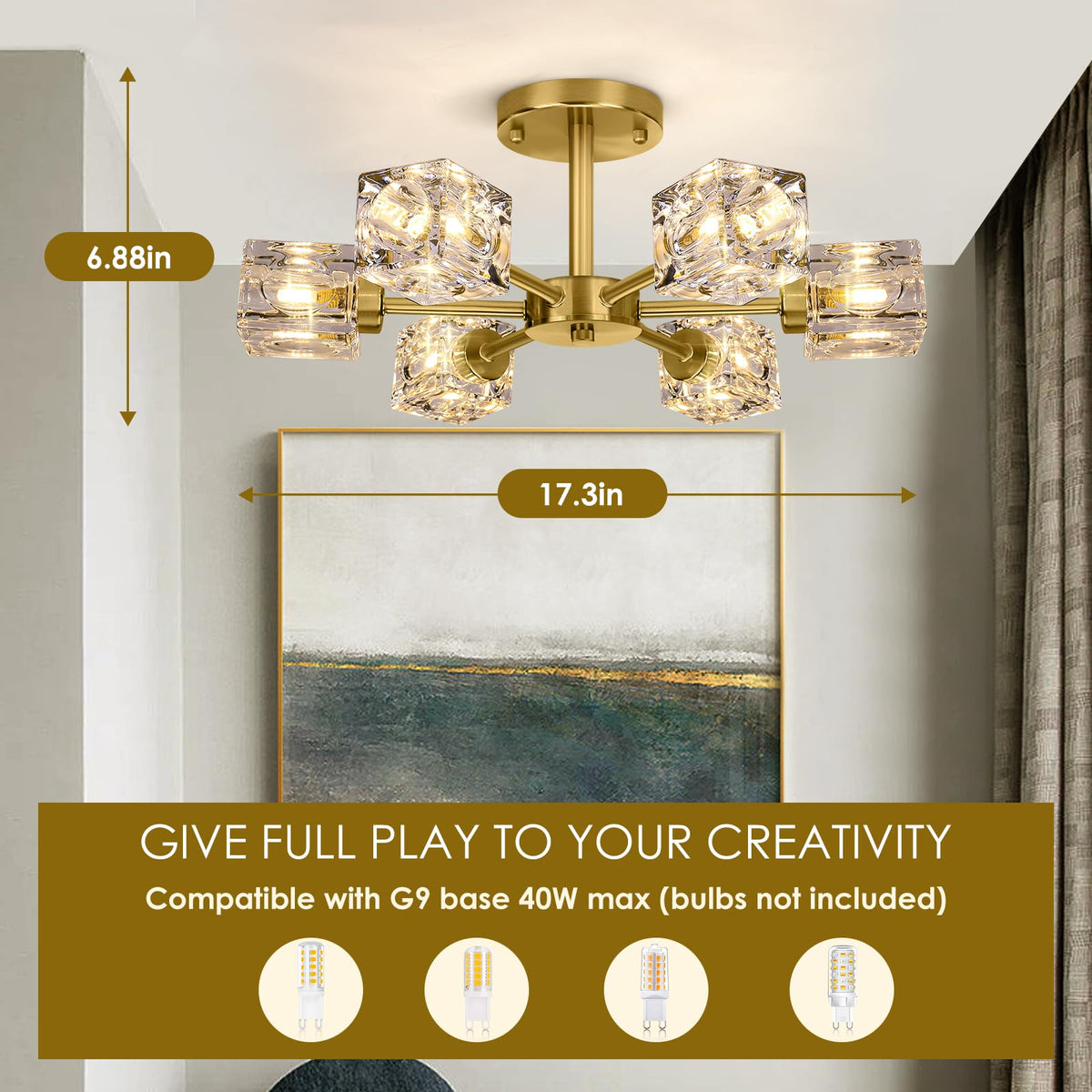 Modern Crystal Chandelier, 6-Light Gold Flush Mount Ceiling Light, 17.3'' Sputnik Chandelier Light Fixture With K9 Crystal Shade