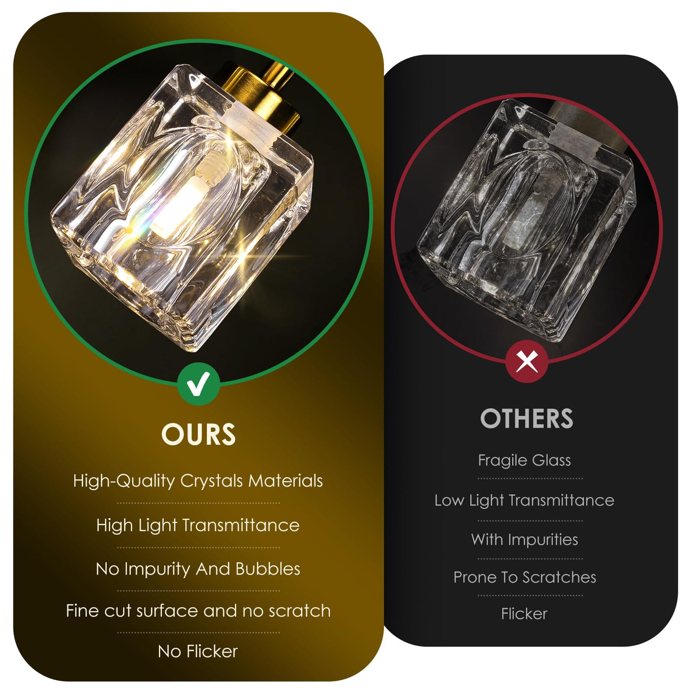 GoBright Modern Gold Pendant Lights to brighten up your home! Why choose our bedroom kitchen pendant lights? - We believe that every detail matters, from the materials we select to the finishes we perfect. Guided by a dedication to excellence, we create objects that stand the test of time. - Built with high-quality solid iron to ensure durability, it is not easy to rust and the paint is not easy to peel off. - K9 crystal with impeccable light transmission to enhance your lighting. - Perfect for kitchen islands, farmhouses, foyers, bedrooms, dining tables, living rooms, bars, dining rooms, entryways, hallways, bedrooms, garages and offices. - An adjustable chain makes it easy to customize the height and position for both flat and sloped ceilings. - The light arm comes partially pre-assembled, making installation a breeze. With a clean, minimalist design concept, this modern chandelier will transform your living space into a modern retreat.