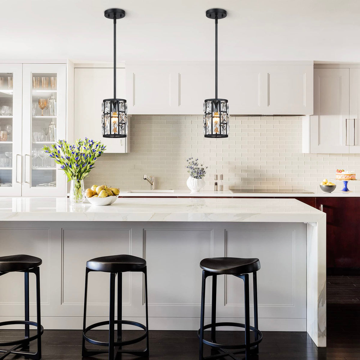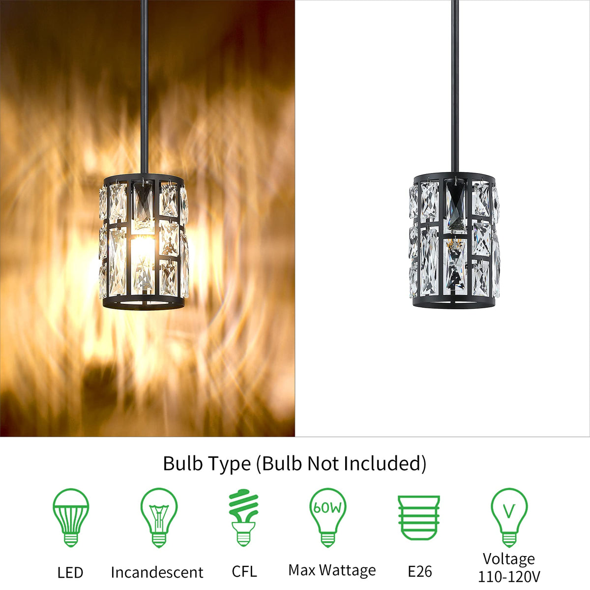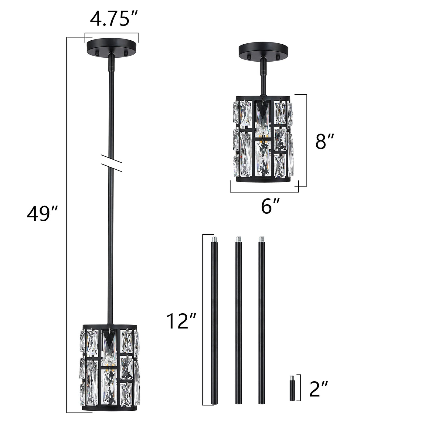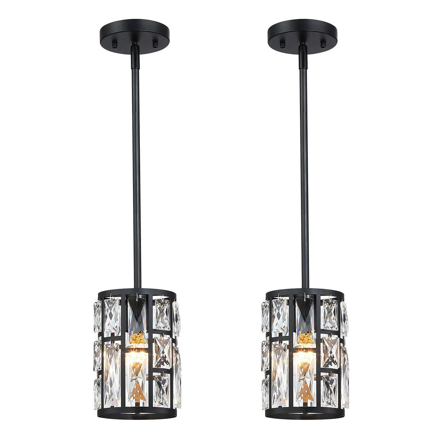 Modern Crystal Pendant Light Fixture 2-Pack Matte Black Finish Hanging Lighting Crystal Chandelier For Living Room, Kitchen