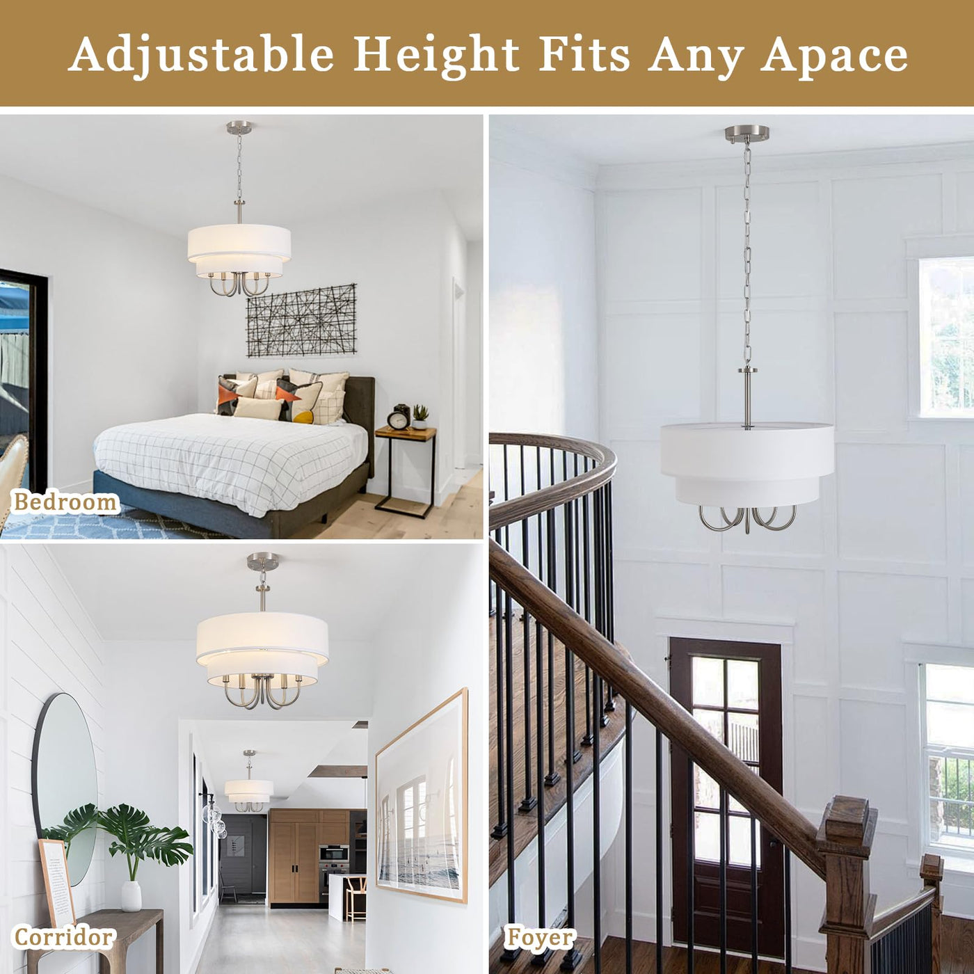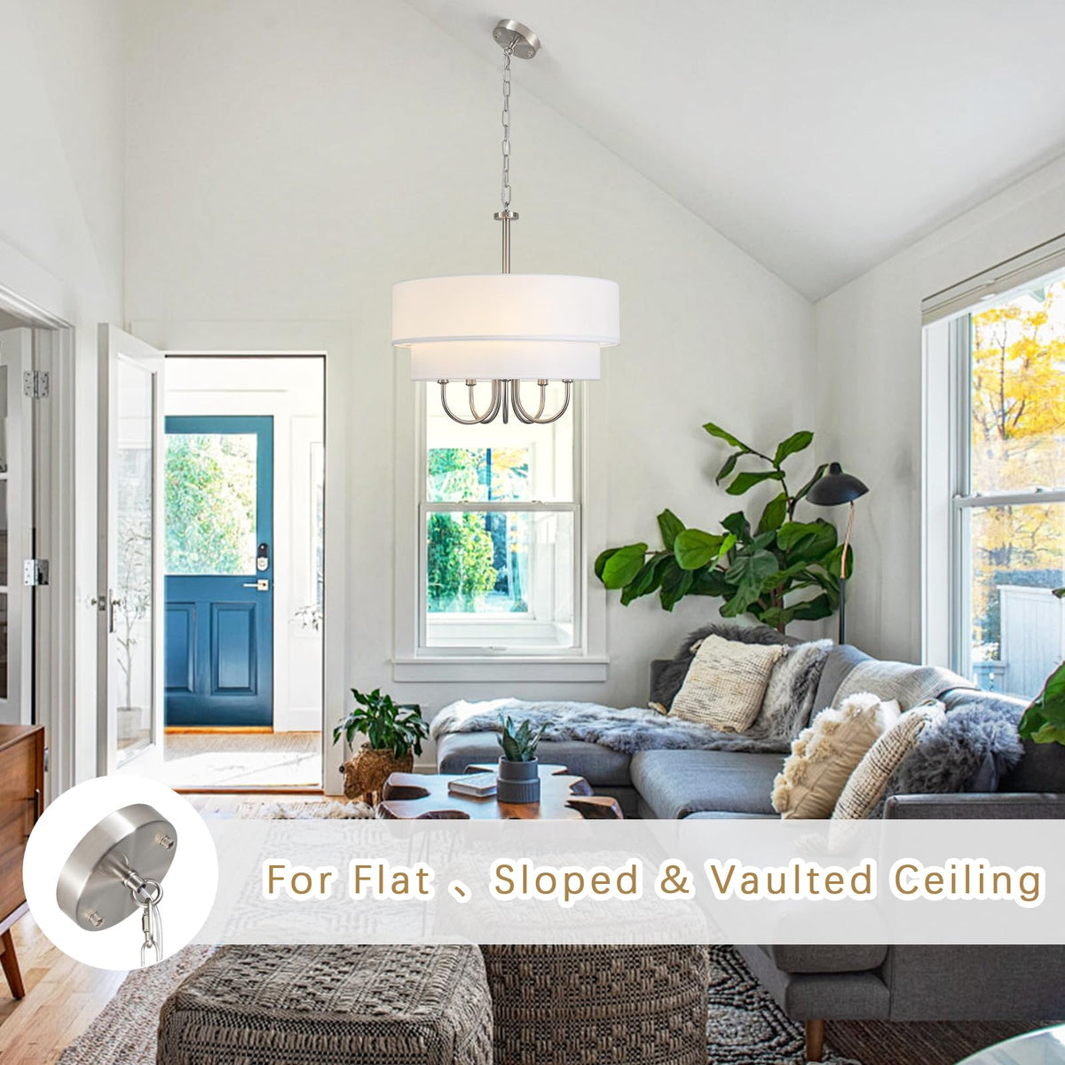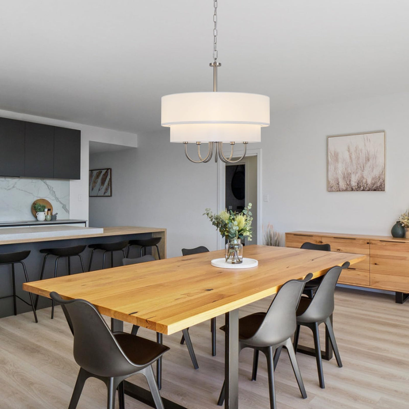 Drum Chandeliers For Dining Room Light Fixture Over Table 5 Light Brushed Nickel Chandelier With Drum Shade Contemporary Farmhouse Light Fixtures Ceiling Hanging Large Pendant Lighting For Kitchen Island Living Room Entryway Foyer Bedroom